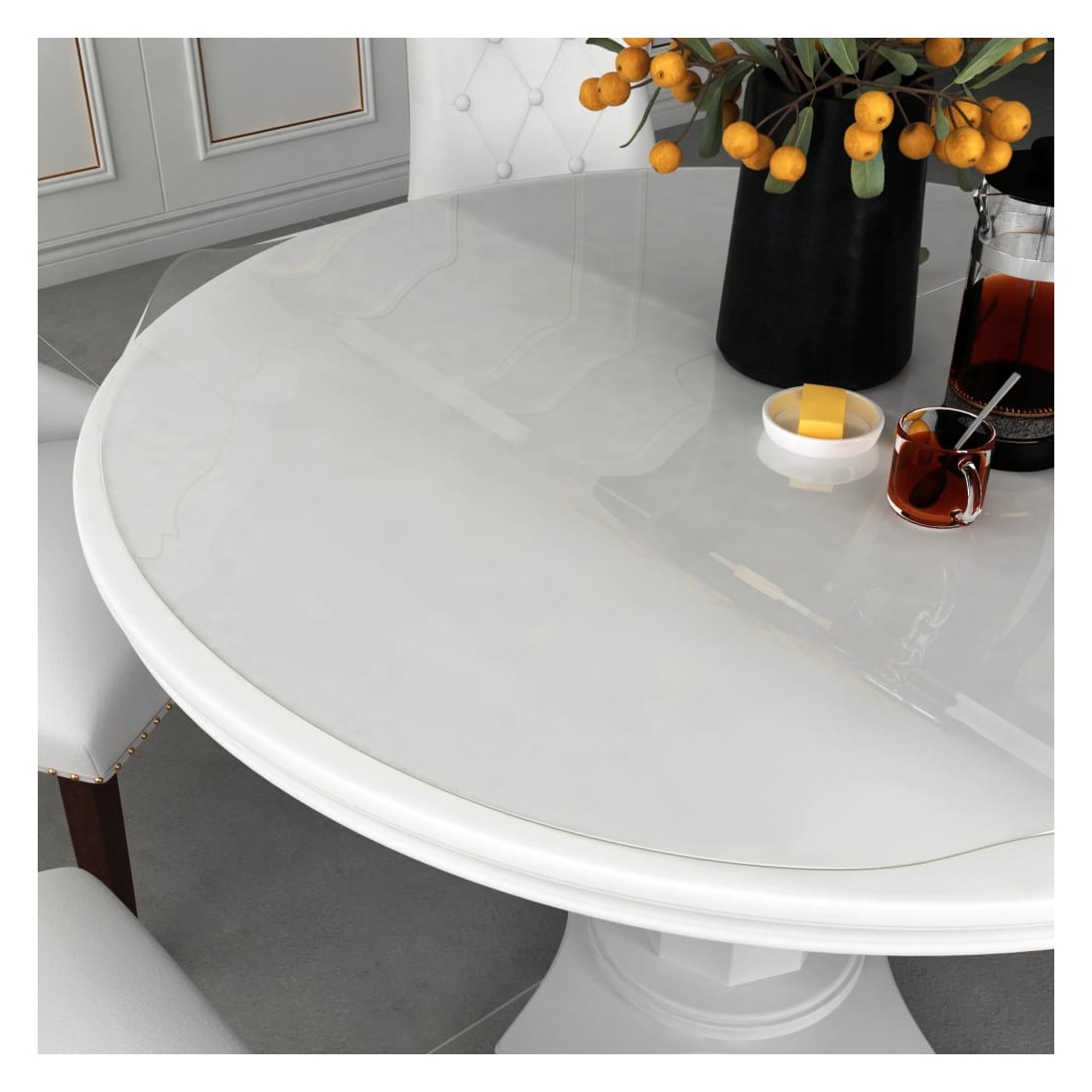 Ce protecteur de table ronde, d'une épaisseur de 2 mm, convient aux tables et aux sols à l'intérieur de la salle à manger, du salon, de la terrasse ou au bureau pour garder vos meubles propres et protégés. Le film de protection des meubles est en PVC. Le PVC est étanche et imperméable aux huiles et autres liquides. Ce film protecteur est donc facile à nettoyer et à entretenir. Il y a une tolérance de 1-2 cm sur les bords. Par conséquent, il est facile et pratique de couper le film dans la forme que vous souhaitez car il est en PVC souple.