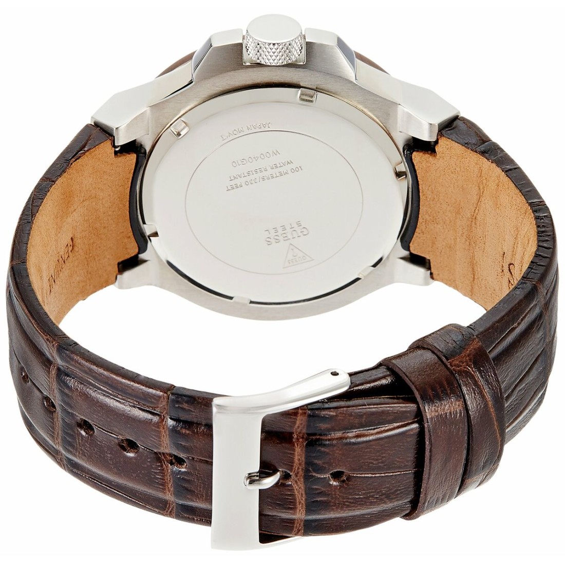 Die W0040G10 Uhr von Guess ist ein speziell für den modernen Mann entworfenes Accessoire, das Eleganz und Funktionalität vereint. Diese Herrenuhr besticht durch ihr Edelstahlgehäuse, ein Material, das Langlebigkeit und Widerstandsfähigkeit gegen täglichen Verschleiß garantiert und gleichzeitig eine polierte, ansprechende Optik bietet. Das brazilederarmband verleiht einen klassischen, edlen Touch und sorgt dank hochwertigem Naturleder für Komfort und perfekten Sitz. Das brazilederfarbene Design von Armband und Details schafft eine warme, vielseitige Ästhetik, die sich leicht mit verschiedenen Kleidungsstilen kombinieren lässt – vom Alltag bis zum formellen Anlass. Das zuverlässige und präzise Uhrwerk gewährleistet stabile Leistung, ideal für den täglichen Gebrauch und besondere Gelegenheiten. Das Modell aus dem Jahr 2017 bewahrt die Essenz von Guess als Marke, die Trend und Qualität in Herrenuhren verbindet. Dank robuster Bauweise und sorgfältig ausgewählter Materialien ist die W0040G10 eine passende Wahl für alle, die eine widerstandsfähige Uhr mit zeitlosem Design auf dem europäischen und globalen Markt suchen. Insgesamt präsentiert sie sich als funktionales Accessoire mit ausgewogenem Design, das die Detailverliebtheit und den charakteristischen Stil von Guess widerspiegelt.