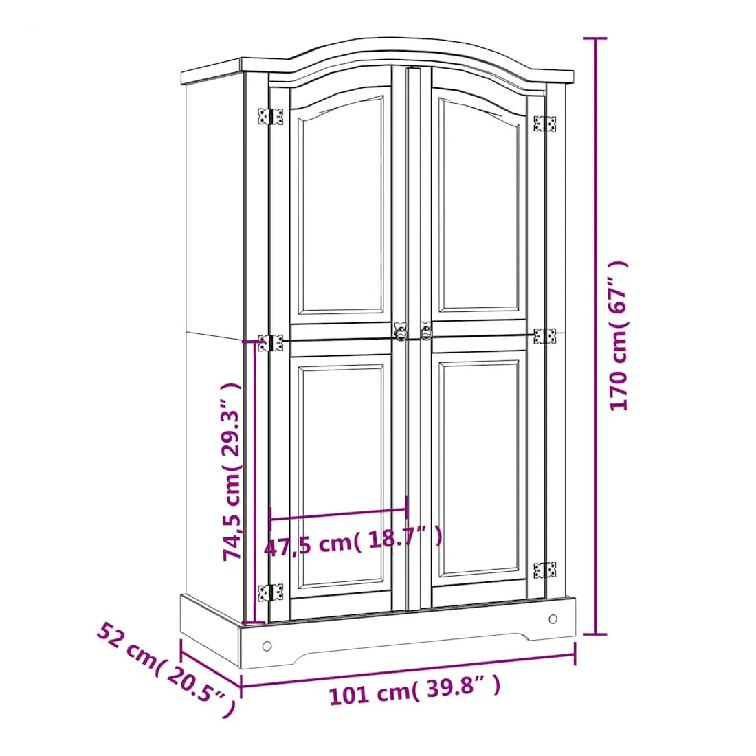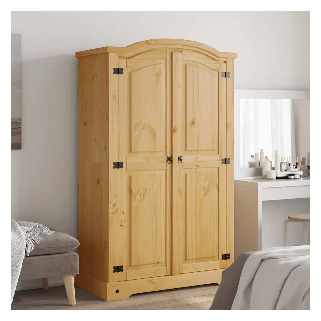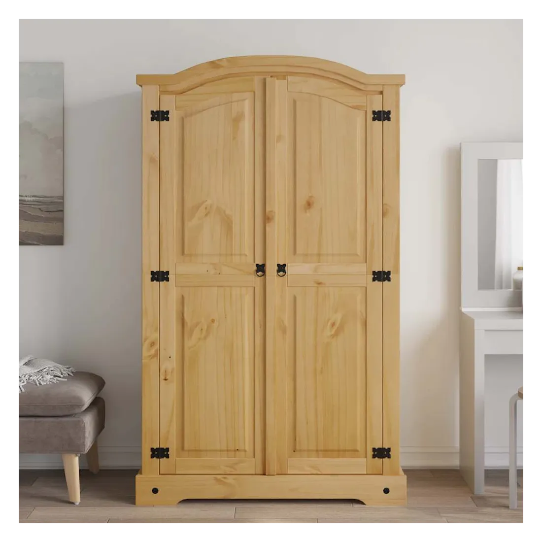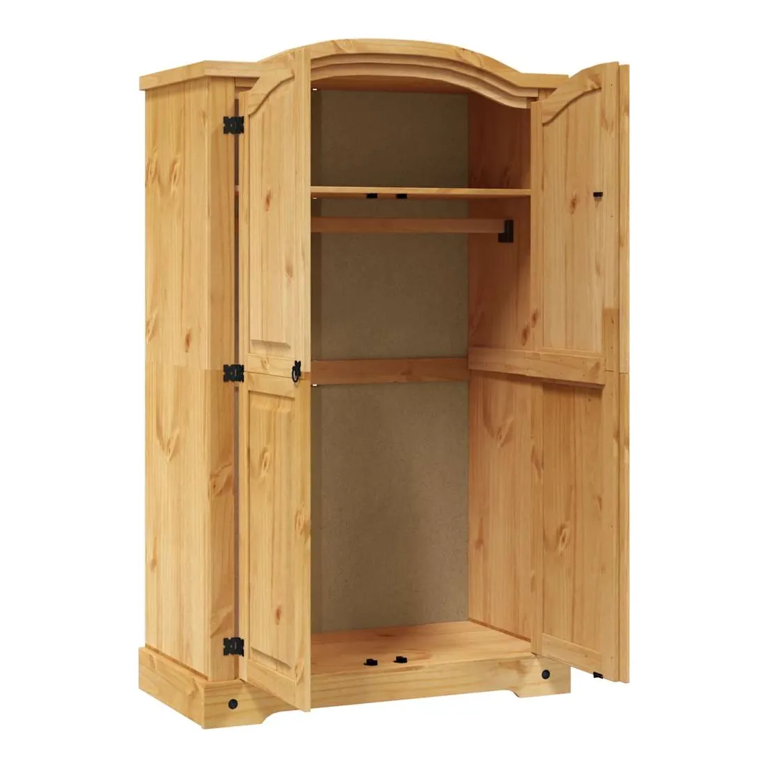 Cette garde-robe en bois de haute qualité est un meuble dans le style mexicain « Corona ». Le pin ciré avec des détails en métal noir dégage un charme mexicain rustique qui fera de la garde-robe un excellent supplément à votre chambre à coucher ou vestiaire. La garde-robe possède un magnifique design de dessus en forme de dôme et 2 portes. Fabriquée à partir de bois de pin massif, elle est solide et robuste. Le placard dispose d’un grand espace de rangement avec une étagère supérieure et une barre de penderie, offrant beaucoup d’espace pour organiser vos vêtements. L'assemblage est vraiment facile.