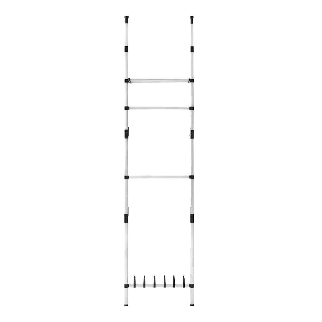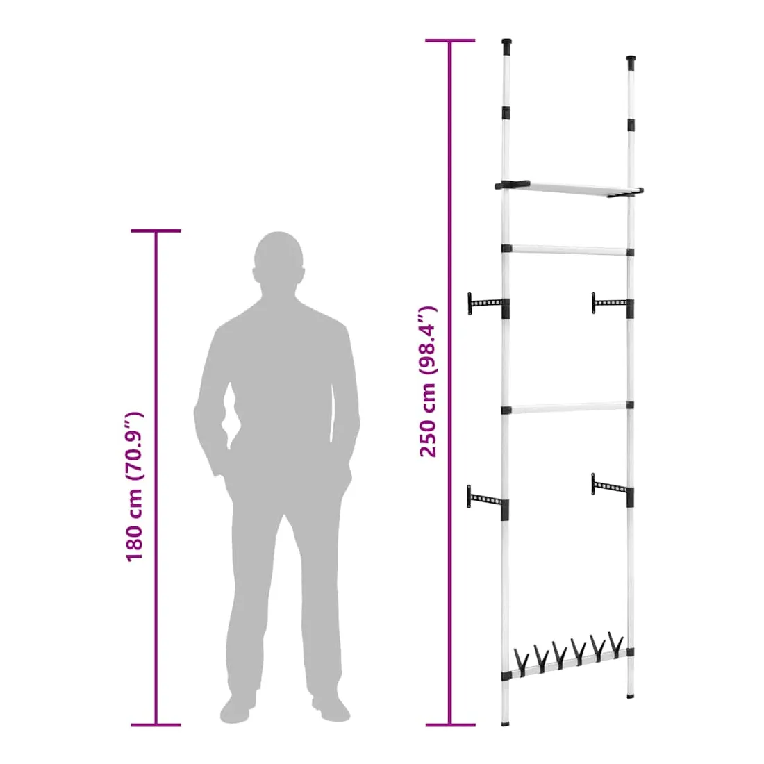 Notre portemanteau télescopique présente une conception simple pour économiser de l'espace dans votre chambre à cocher et dans toute autre pièce. Le système de garde-robe télescopique est en aluminium, ce qui le rend fort et robuste. Ce support de rangement peut être adaptable à différents aménagements spatiaux, grâce à son système télescopique et à la hauteur réglable. Il offre un moyen unique et ingénieux d'organiser votre garde-robe. Organisez vos vêtements et gardez votre pièce propre avec notre système d'organisation de garde-robe télescopique !