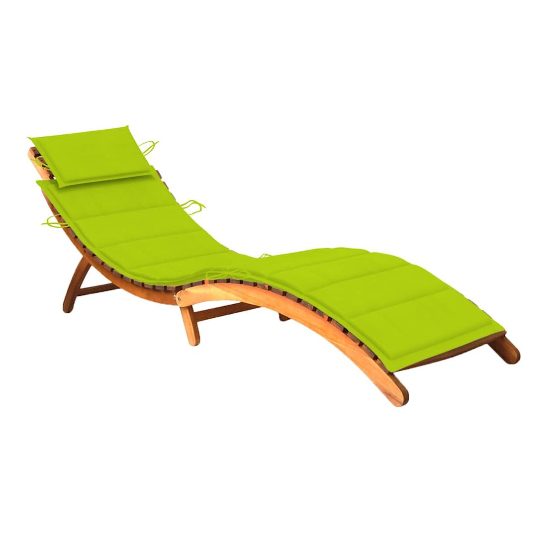 Détendez-vous et reposez-vous dans votre jardin ou sur votre patio sur cette confortable chaise longue en bois ! Vous pouvez passer un après-midi de détente dans votre propre espace extérieur ! Elle est parfaite pour une piscine, un balcon, un jardin, etc. Cette chaise longue d'extérieur est fabriquée en bois d’acacia massif, ce qui la rend robuste et stable. Le lit de repos présente une forme incurvée ergonomique, vous permettant de vous allonger et de vous détendre pleinement. Ce transat peut être replié lorsqu'il n’est pas utilisé. Le coussin avec appui-tête ajoute un confort supplémentaire pendant que vous vous prélassez. Chaque coussin comprend six ensembles de cordes pour que vous puissiez le fixer solidement sur la chaise longue.