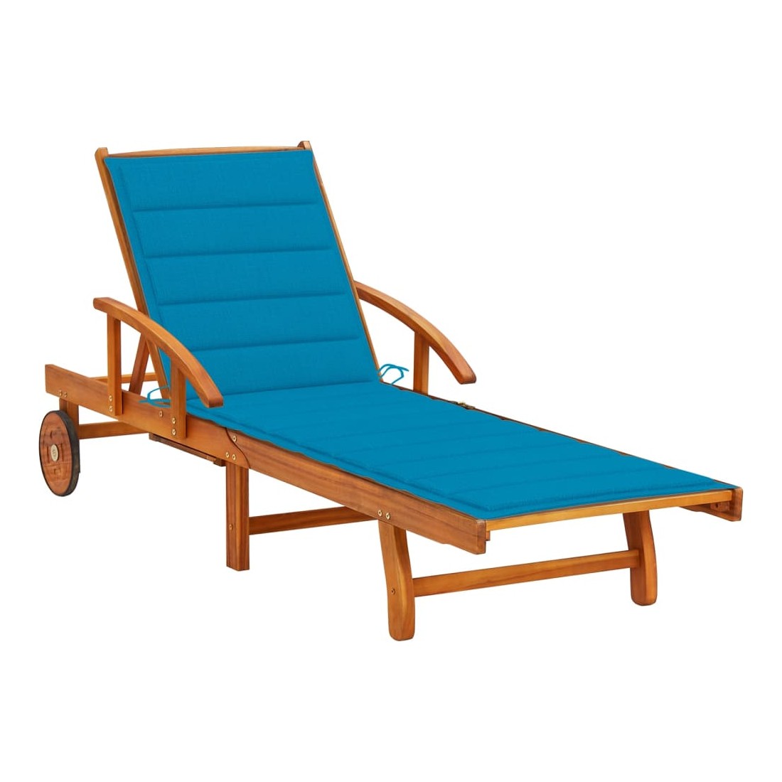 Avec cette chaise longue en bois d’acacia massif à la mode, vous trouverez toujours un endroit confortable pour vous détendre sur votre terrasse ou dans votre jardin. Cette chaise longue de jardin est fabriquée en bois d’acacia massif, ce qui la rend robuste et stable. La chaise longue de jardin peut être facilement déplacée autour de la maison grâce aux 2 roues. Le dossier et le repose-pied sont réglables, et vous pouvez également verrouiller la chaise longue en bois dans la position souhaitée. La table escamotable vous permet de placer votre téléphone, lunettes de soleil, boisson et autres petits articles. Le coussin ajoute un confort supplémentaire tout en vous prélassant. Chaque coussin comprend deux ensembles de cordes pour le fixer solidement sur le transat.