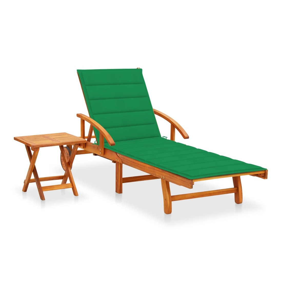 Chaise longue de jardin avec table et coussin Bois d'acacia