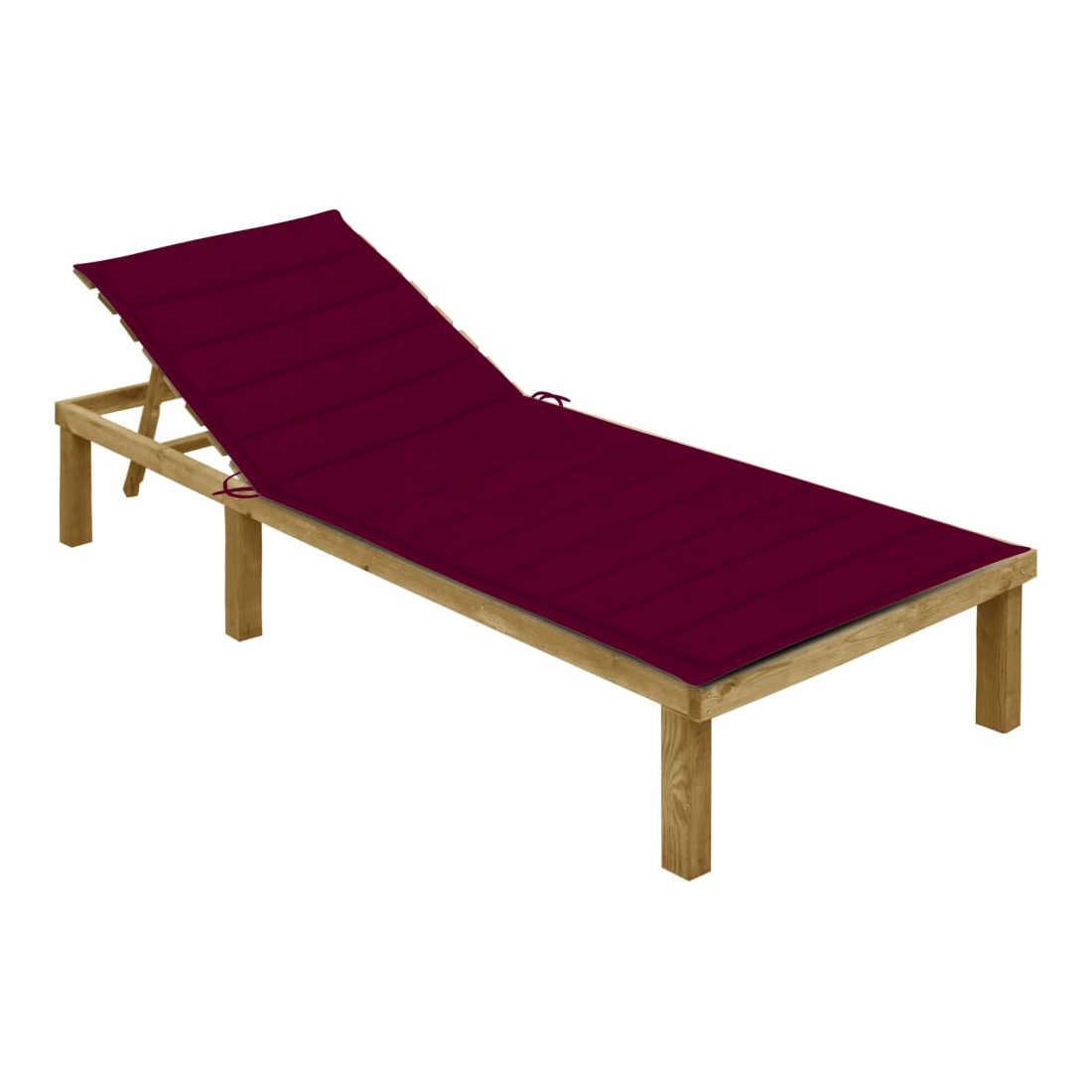 Chaise longue avec coussin bordeaux Bois de pin imprégné