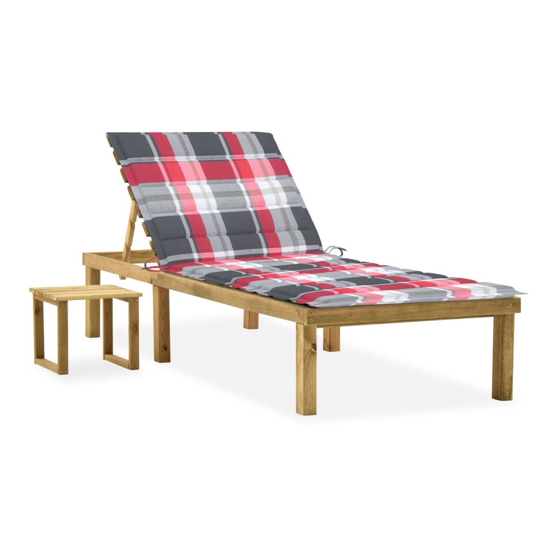 Chaise longue de jardin avec table et coussin Pin imprégné