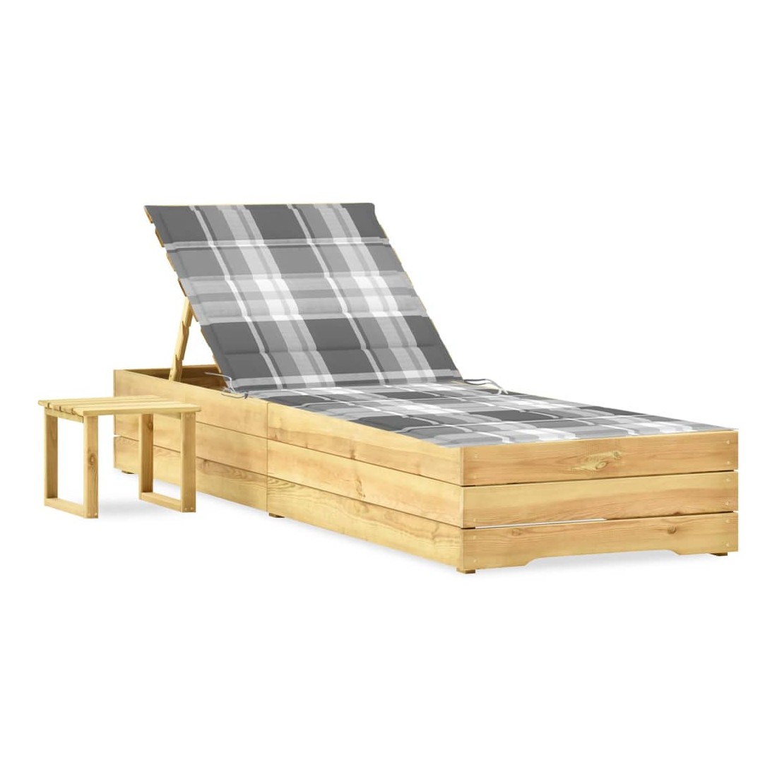 Chaise longue de jardin avec table et coussin Pin imprégné