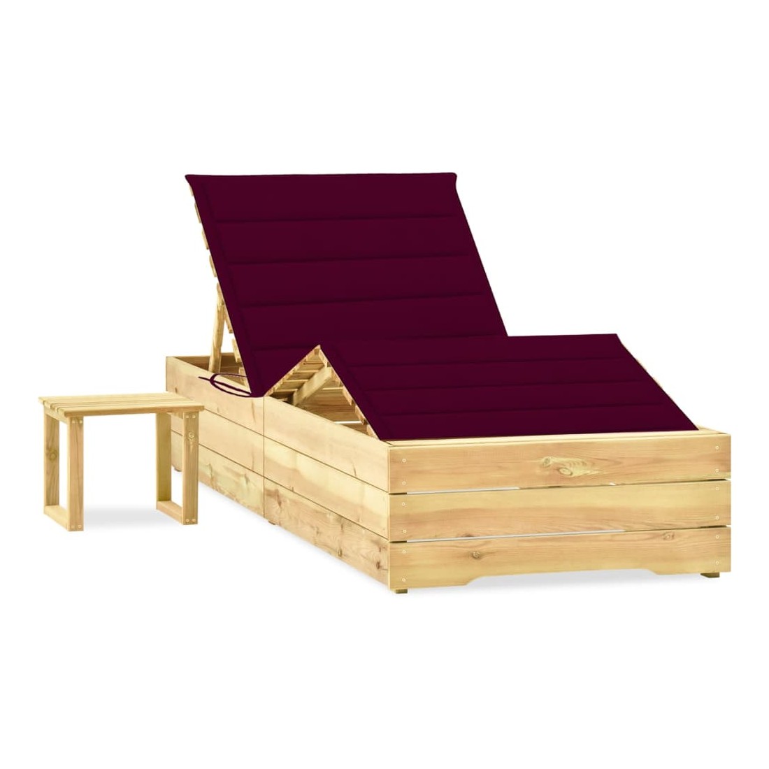 Chaise longue de jardin avec table et coussin Pin imprégné