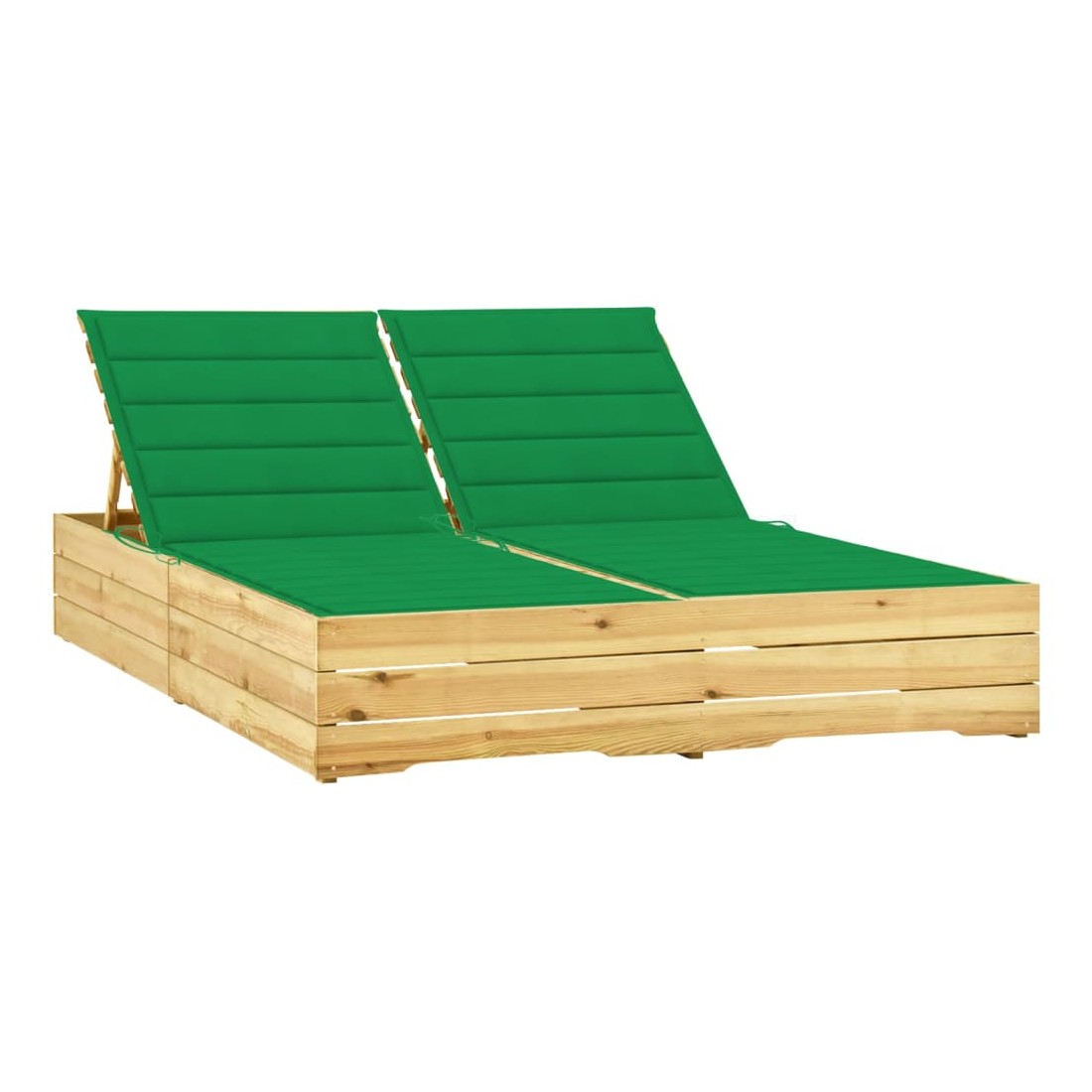Chaise longue double et coussins vert Bois de pin imprégné