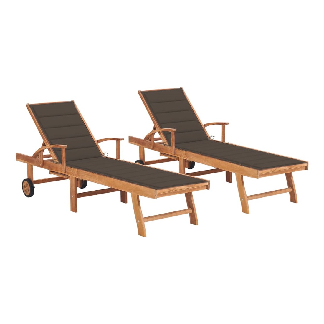 Chaises longues lot de 2 avec coussin taupe Bois de teck solide