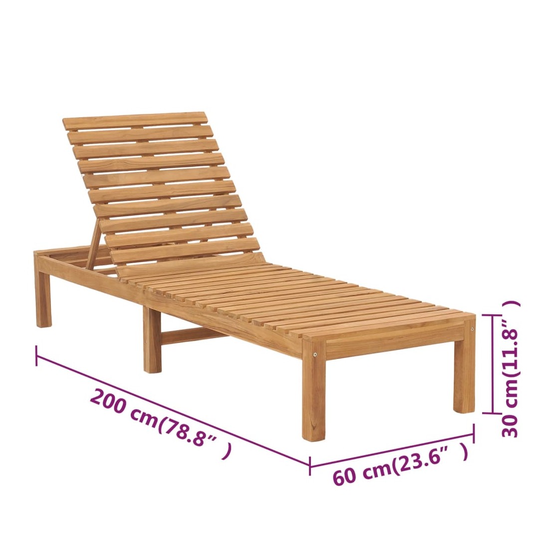 Cette chaise longue de jardin en bois avec dossier réglable sera un choix idéal pour vous détendre et profiter d'une journée dans votre espace de vie extérieur. Bois de teck massif : le bois de teck massif est un matériau naturel magnifique. Il a été chevronné, séché au four, puis sablé finement pour lui donner une apparence très lisse. Le bois de teck est connu pour sa résistance exceptionnelle et sa résistance aux intempéries.Dossier réglable : le lit de salon est doté d'un dossier réglable, de sorte que vous puissiez toujours trouver la position la plus confortable.Design à lattes : les lattes d'assise et de dossier offrent également un excellent soutien et confort. Remarque :Afin de prolonger la durée de vie de votre mobilier d'extérieur, nous vous recommandons de le protéger avec une housse imperméable.