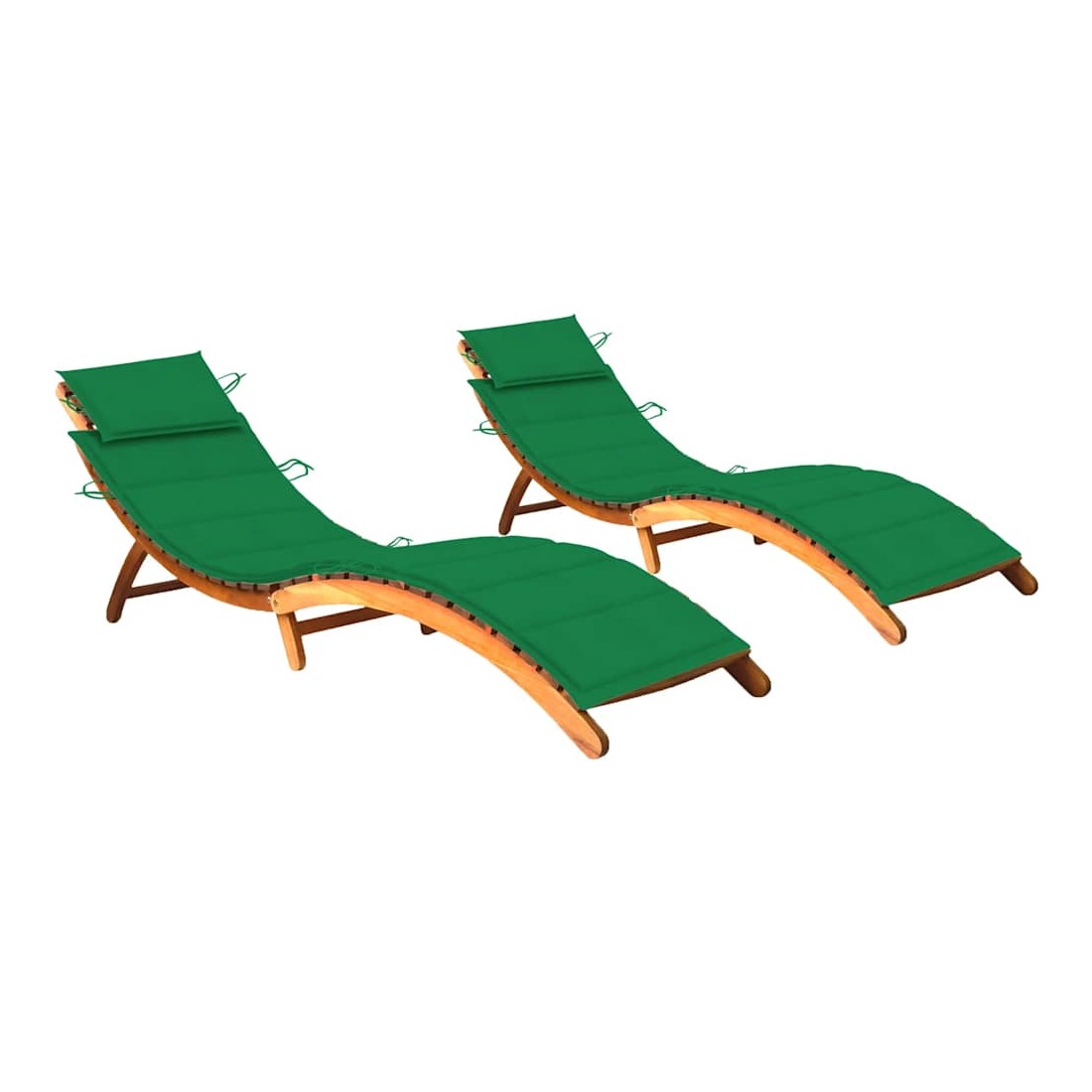 Chaises longues lot de 2 avec coussins Bois d'acacia solide