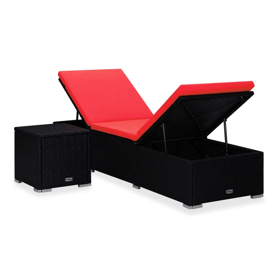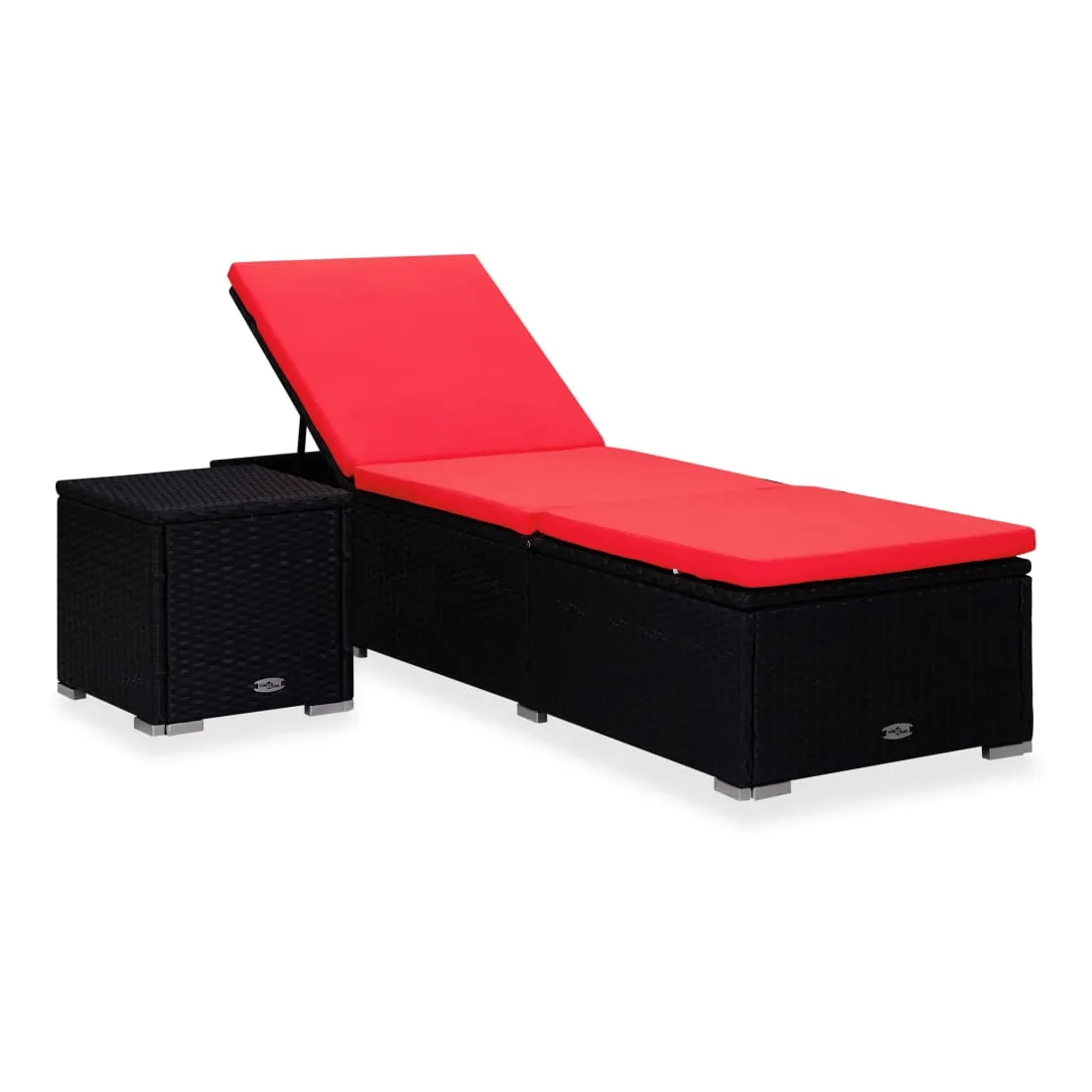 Chaise longue avec coussin et table à thé Résine tressée Rouge