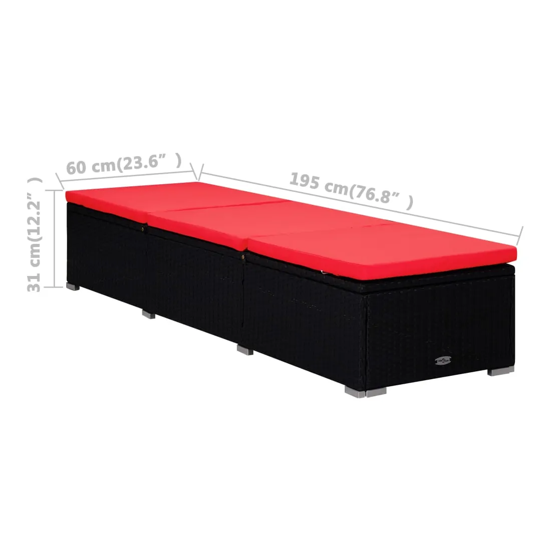 • Dimensions de la chaise longue : 195 x 60 x 31 cm (L x l x H)