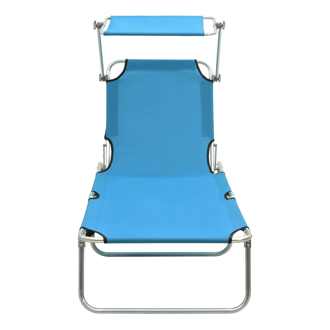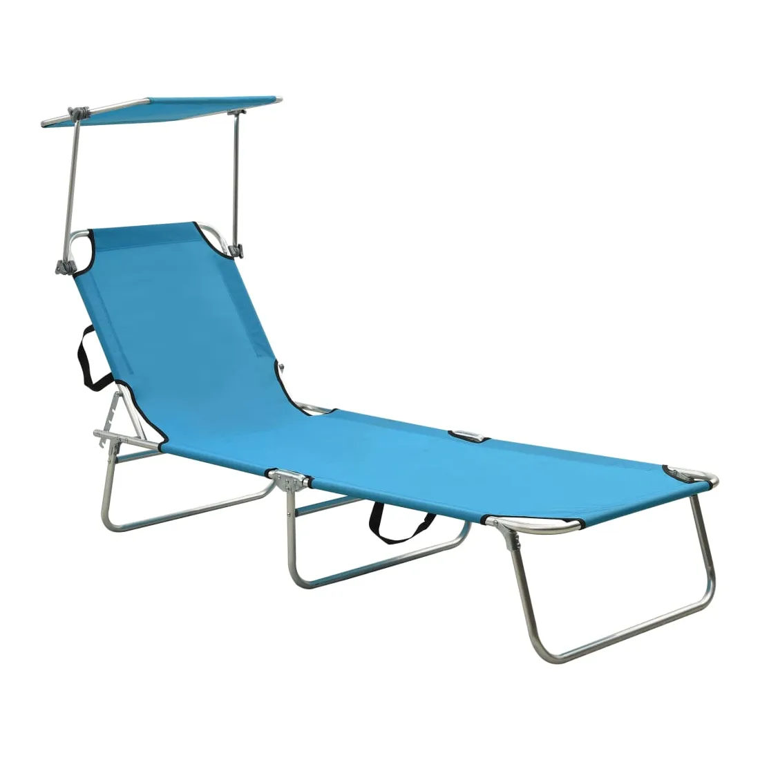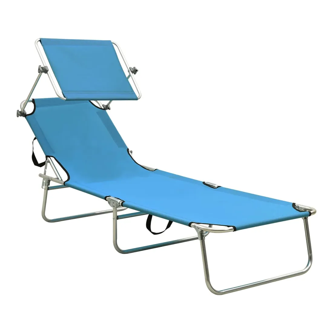 Chaise longue pliable avec auvent acier turquoise et bleu