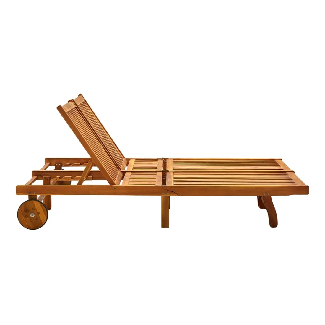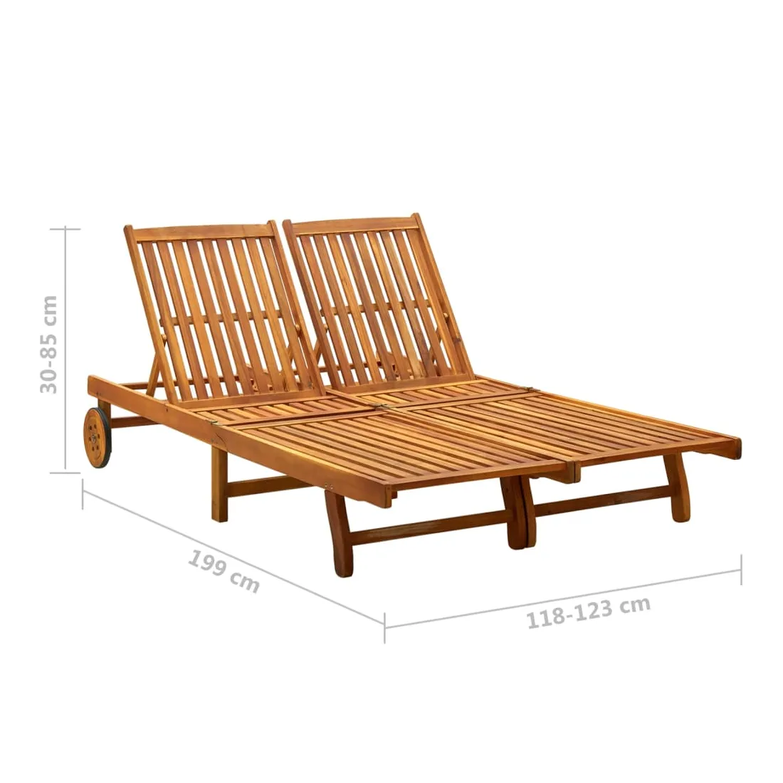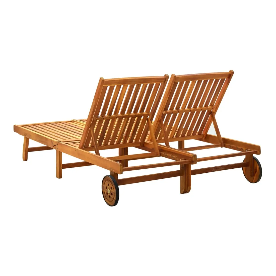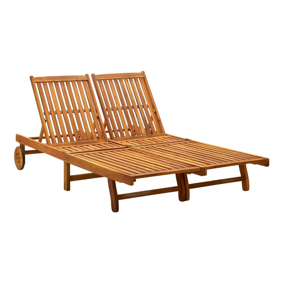 Détendez-vous et reposez-vous dans votre jardin ou sur votre patio sur cette chaise longue 2 places en bois ! Vous pouvez passer un après-midi de détente dans votre propre espace extérieur. Elle est parfaite pour une piscine, un balcon, un jardin, etc. Ce lit de repos est fabriqué en bois d’acacia massif avec une finition à l’huile, ce qui le rend robuste et stable. Le dossier est réglable afin que vous puissiez toujours trouver la position la plus confortable. Le siège et les lattes de dossier offrent un grand soutien et confort ainsi. Le lit de repos peut être déplacé facilement autour de la maison grâce aux 2 roues équipées. Remarque : afin de prolonger la durée de vie des meubles d'extérieur, nous vous recommandons de les protéger avec une housse imperméable.