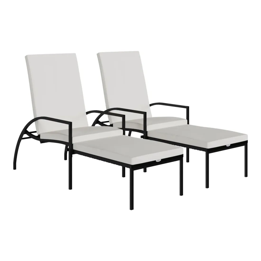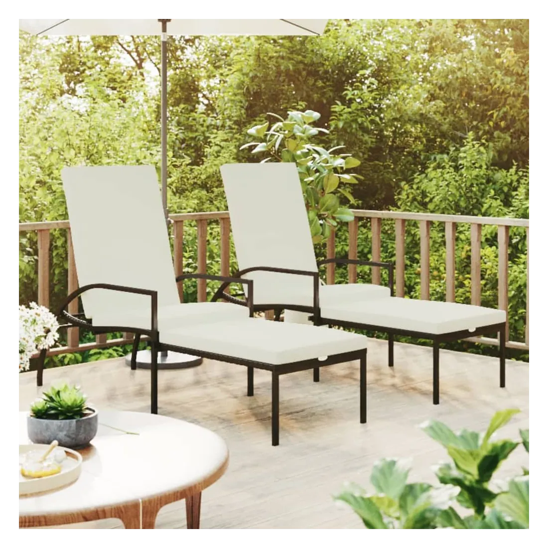 Détendez-vous dans le jardin ou sur la terrasse sur ces confortables chaises longues ! Vous pouvez passer un après-midi relaxant dans votre propre espace extérieur, idéal pour la piscine, le balcon, le jardin, etc. Les chaises longues d'extérieur présentent un cadre en acier robuste, ce qui les rendent très durables. Ses larges accoudoirs et son haut dossier ajoutent à son attrait visuel ainsi qu'au confort d'assise ou de couchage. Le dossier est réglable afin que vous puissiez verrouiller la chaise longue à la position souhaitée. De plus, le repose-pied vous permet de vraiment lever vos pieds lorsque vous vous détendez. Remarque : afin de prolonger la durée de vie des meubles d'extérieur, nous vous recommandons de les protéger avec une housse imperméable.