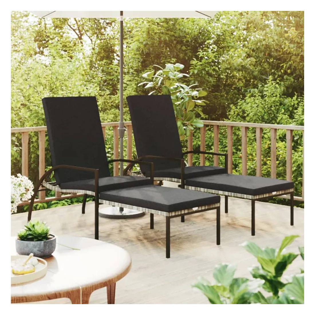 Détendez-vous dans le jardin ou sur la terrasse sur ces confortables chaises longues ! Vous pouvez passer un après-midi relaxant dans votre propre espace extérieur, idéal pour la piscine, le balcon, le jardin, etc. Les chaises longues d'extérieur présentent un cadre en acier robuste, ce qui les rendent très durables. Ses larges accoudoirs et son haut dossier ajoutent à son attrait visuel ainsi qu'au confort d'assise ou de couchage. Le dossier est réglable afin que vous puissiez verrouiller la chaise longue à la position souhaitée. De plus, le repose-pied vous permet de vraiment lever vos pieds lorsque vous vous détendez. Remarque : afin de prolonger la durée de vie des meubles d'extérieur, nous vous recommandons de les protéger avec une housse imperméable.