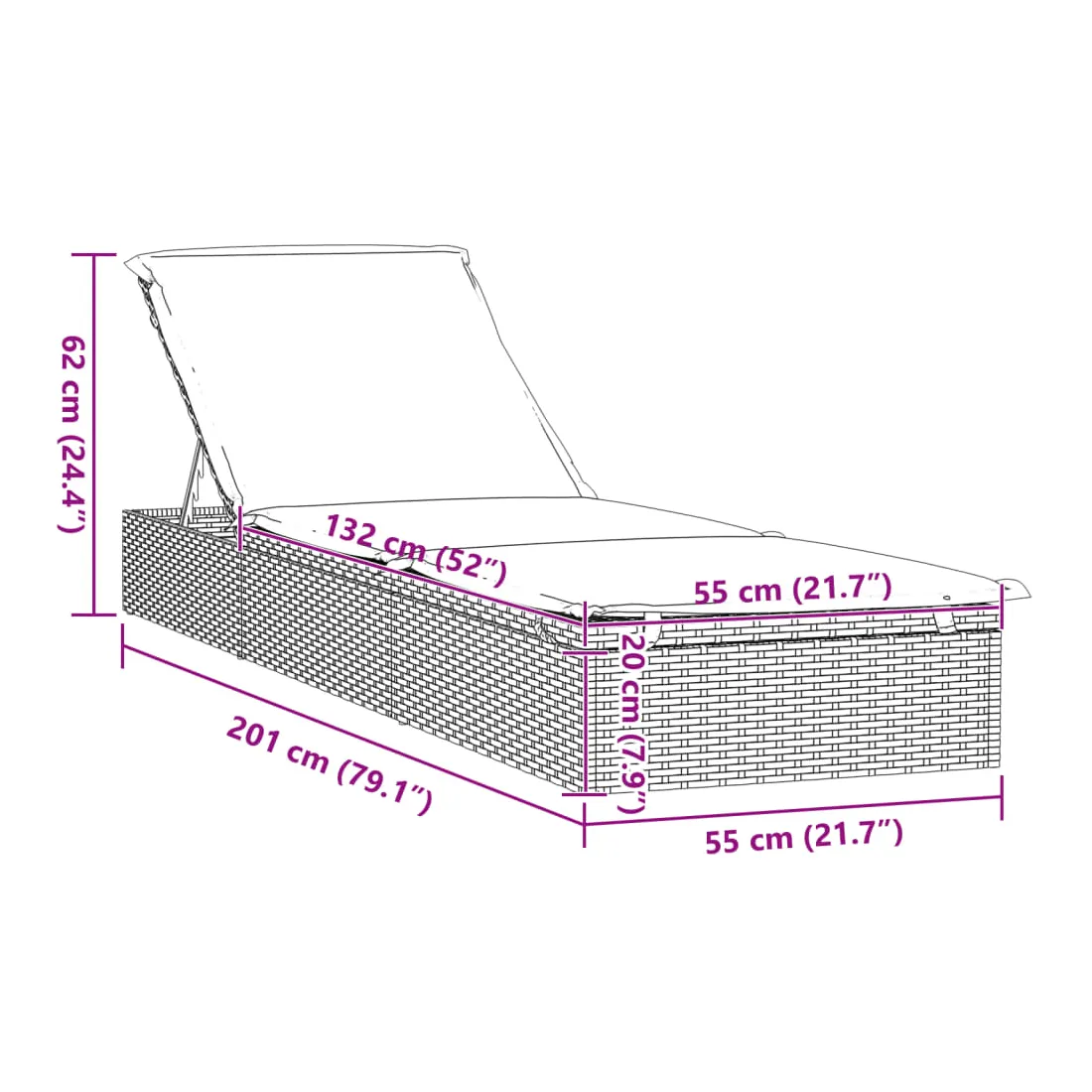 Ce transat avec coussin est idéal pour se détendre au bord de la piscine, sur votre balcon ou au camping pendant vos vacances ou vos loisirs. Matériau durable : la chaise longue est fabriquée en rotin PE, résistant aux intempéries et facile à nettoyer. Elle reste belle à l'extérieur pendant longtemps. Elle est plus économique que d'autres matériaux tout en offrant une excellente qualité, commodité et un aspect esthétique.Cadre stable : l'acier est un matériau exceptionnellement dur et résistant. Il offre robustesse et stabilité pour le bain de soleil. Le revêtement en poudre sur l'acier crée une couche protectrice contre l'usure.Siège réglable : les deux côtés du lit de jour peuvent être tirés vers le haut et ajustés à différents angles pour une position allongée plus confortable. Bon à savoir :Pour que vos meubles d'extérieur restent beaux, nous vous recommandons de les protéger avec une housse imperméable.
