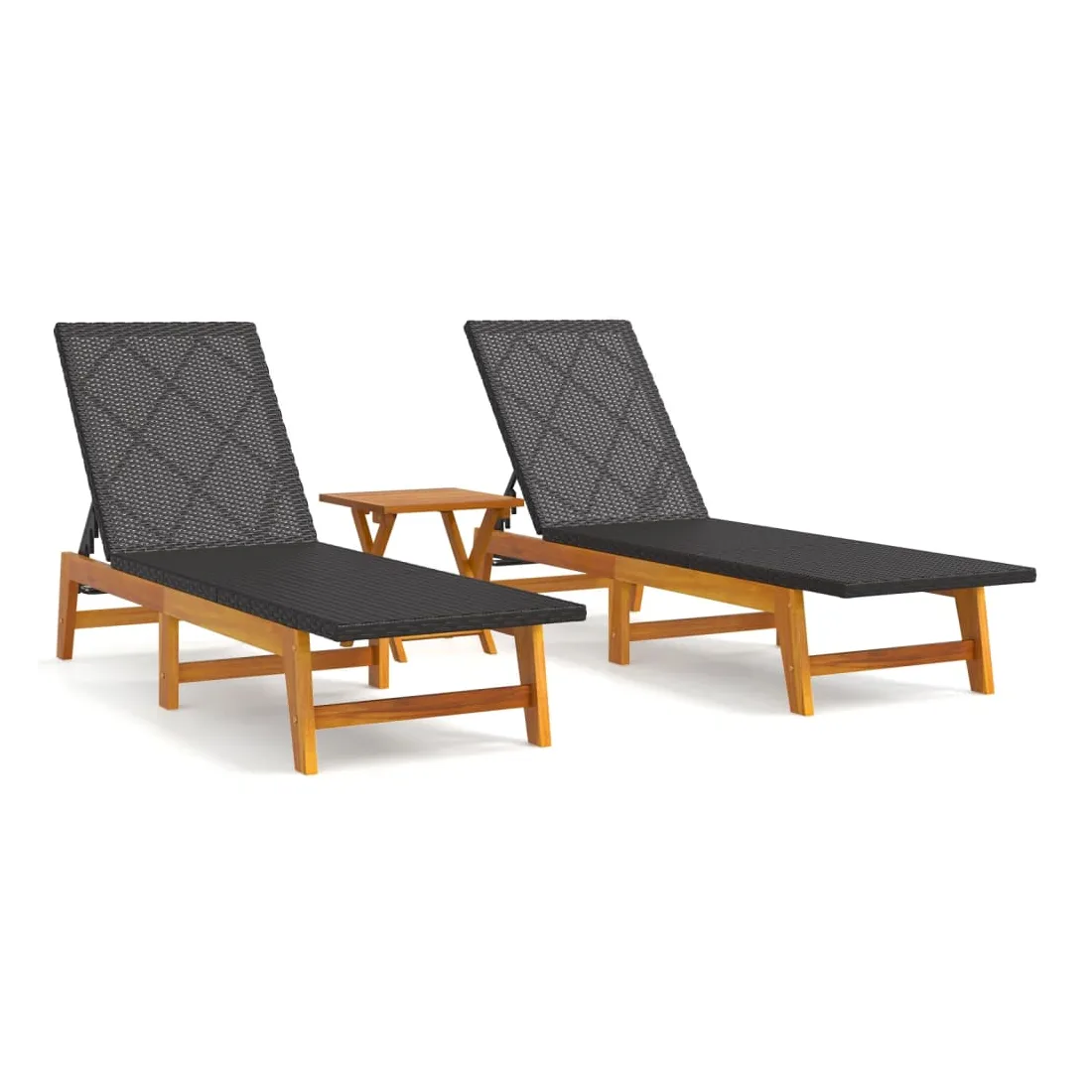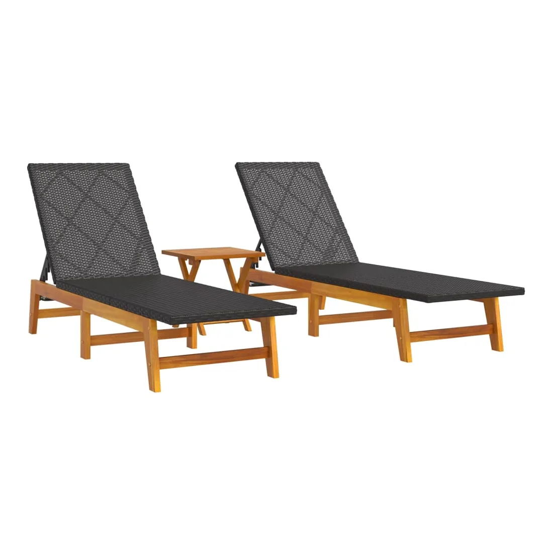 Ce salon de jardin, avec un design élégant et contemporain, sera un excellent choix pour vous détendre dans le jardin. Bois d'acacia massif : le bois d'acacia massif est un matériau naturel magnifique. Le bois d'acacia est un bois dur tropical, dense, robuste et durable. Par conséquent, le cadre de la chaise longue en bois d'acacia à finition à l'huile est stable et facile à entretenir.Matériau durable : la résine tressée, également connue sous le nom de rotin poly, résiste aux intempéries et est facile à nettoyer. Elle reste belle à l'extérieur pendant une longue période. Elle offre une excellente qualité, commodité et un aspect esthétique.Dossier réglable : la chaise longue confortable de cet ensemble de meubles de jardin a un dossier inclinable avec 4 positions pour une relaxation optimale.Table pratique : le dessus robuste en bois d'acacia est parfait pour garder à portée de main votre téléphone, livre, collation ou boisson. Remarque :Pour que vos meubles d'extérieur restent beaux, nous vous recommandons de les protéger avec une housse imperméable. Bon à savoir :Pour faciliter au maximum le montage, chaque produit est livré avec des instructions.