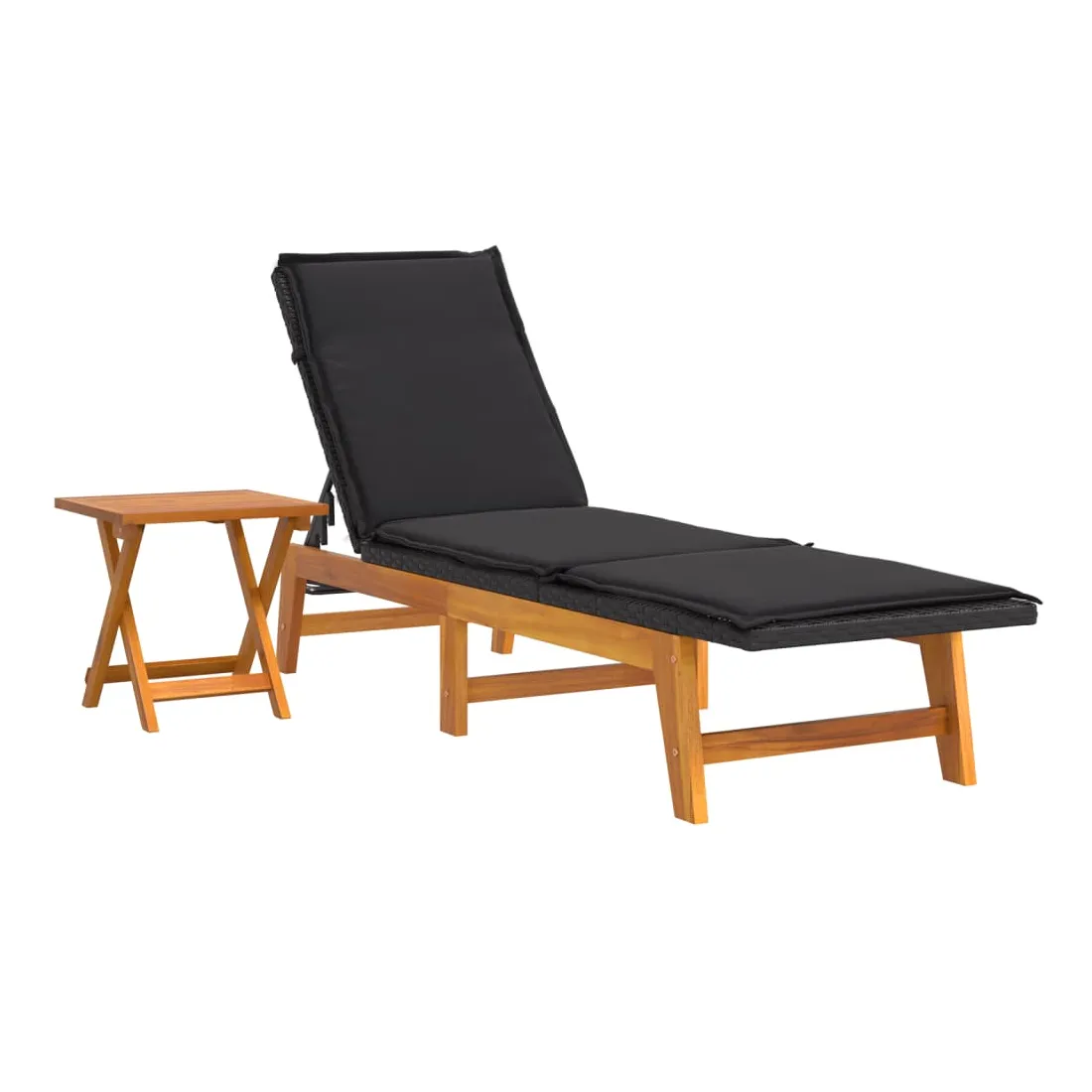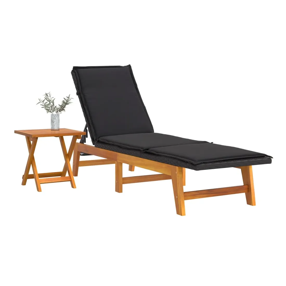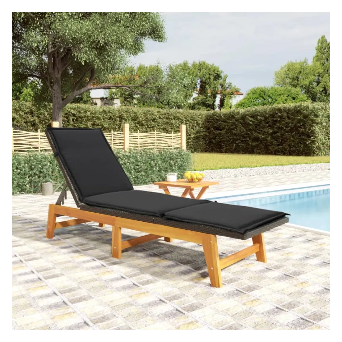 Cette chaise longue classique est idéale pour prendre un bain de soleil et vous détendre près de la piscine, sur la terrasse ou dans le jardin. Bois d'acacia massif : le bois d'acacia massif est un matériau naturel magnifique. Le bois d'acacia est un bois dur tropical, dense, robuste et durable. Par conséquent, le cadre de la chaise longue en bois d'acacia à finition à l'huile est stable et facile à entretenir.Matériau durable : la résine tressée, également connue sous le nom de rotin poly, résiste aux intempéries et est facile à nettoyer. Elle reste belle à l'extérieur pendant une longue période. Elle offre une excellente qualité, commodité et un aspect esthétique.Dossier réglable : la chaise longue confortable dispose d'un dossier inclinable à 4 positions pour une relaxation optimale.Confort supplémentaire : le coussin bien rembourré de la chaise longue offre un confort ultime pendant votre temps de détente.Table pratique : le dessus robuste en bois d'acacia est parfait pour garder à portée de main votre téléphone, livre, collation ou boisson. Remarque :Pour que vos meubles d'extérieur restent beaux, nous vous recommandons de les protéger avec une housse imperméable. Bon à savoir : Pour faciliter au maximum le montage, chaque produit est livré avec des instructions.