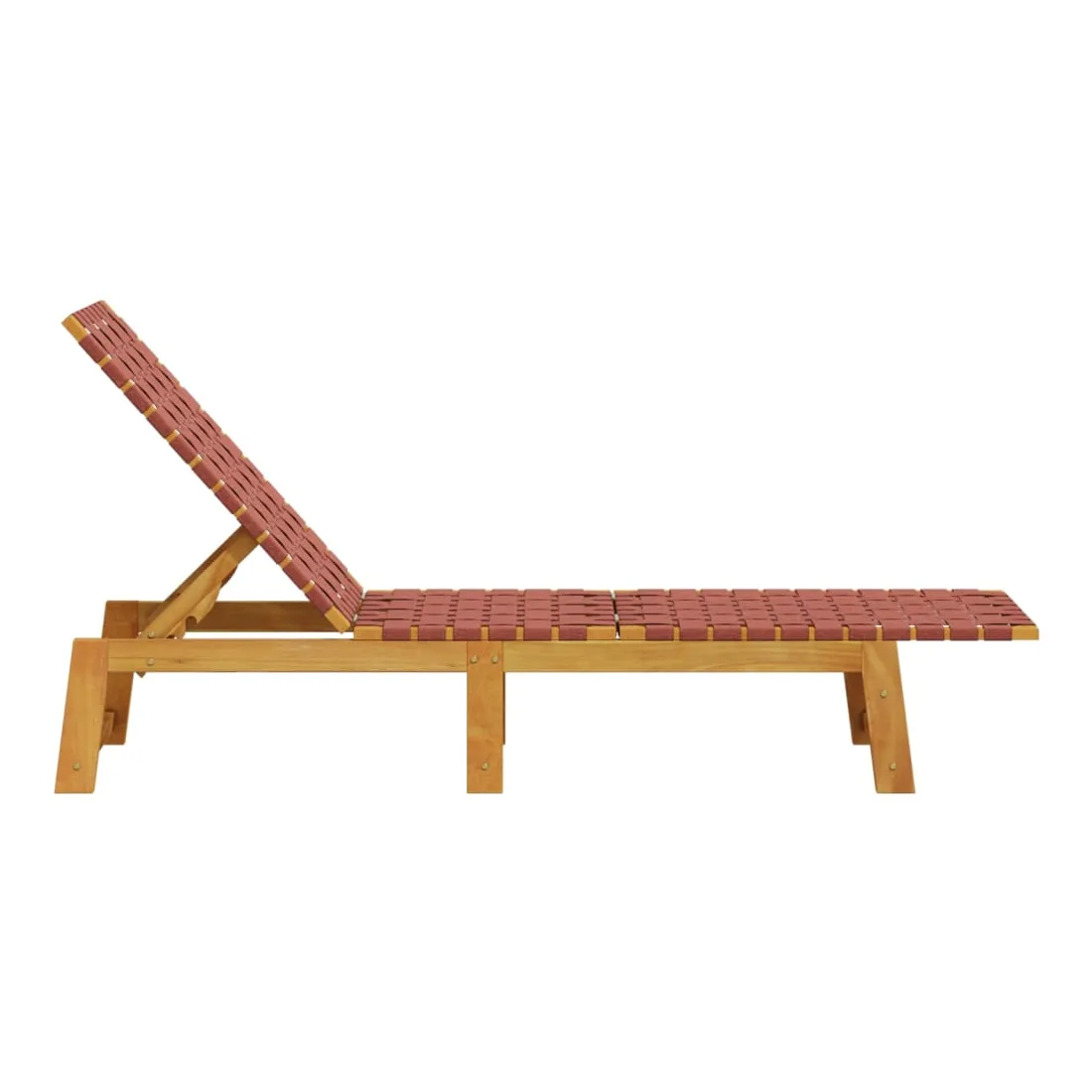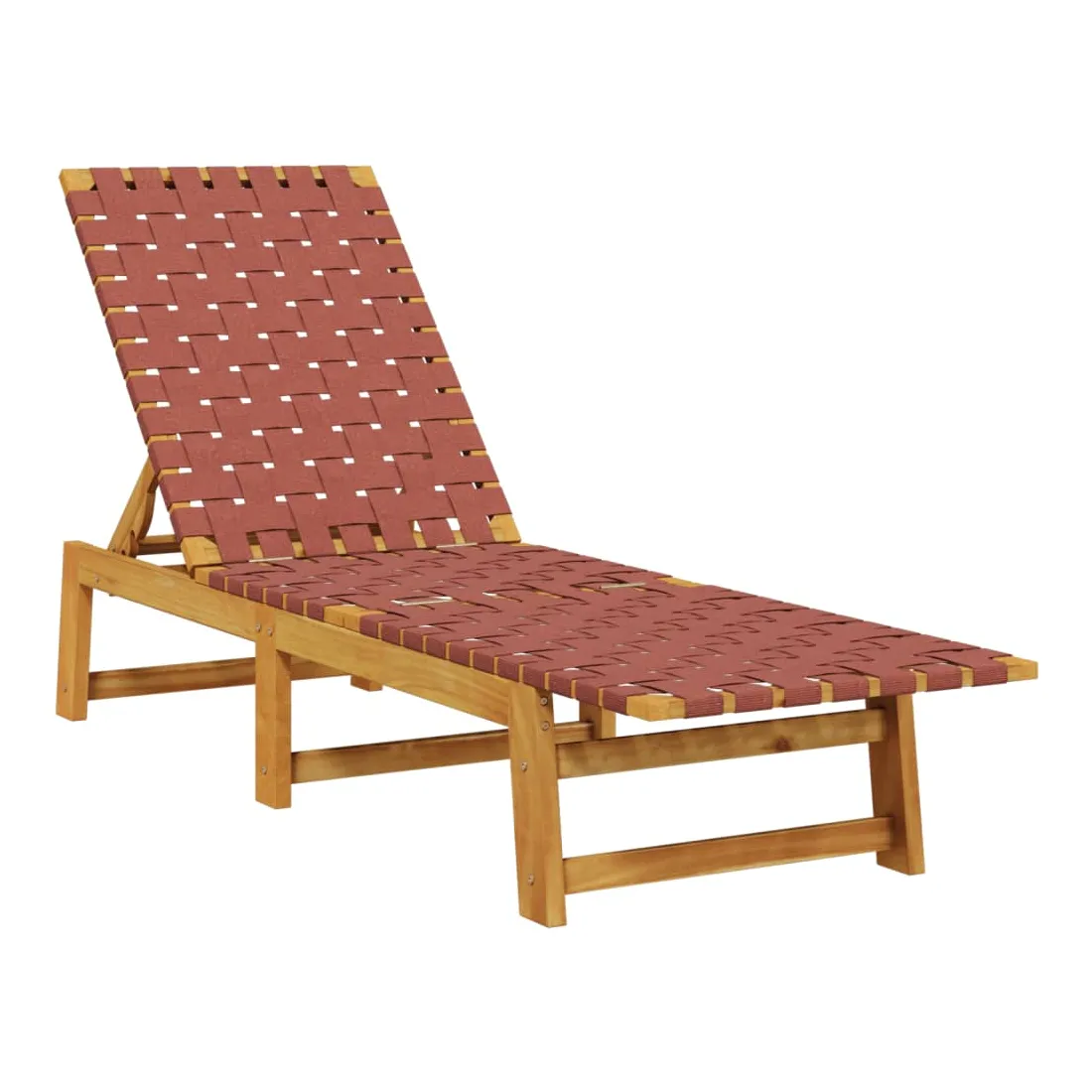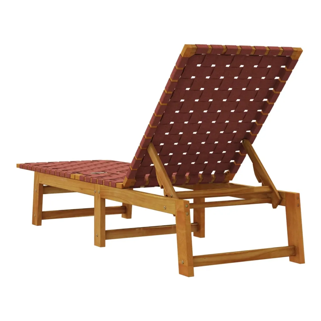 Ces chaises longues classiques sont idéales pour prendre un bain de soleil et vous détendre près de la piscine, sur la terrasse ou dans le jardin. Bois d'acacia massif : le bois d'acacia massif est un matériau naturel magnifique. Le bois d'acacia est un bois dur tropical, dense, robuste et durable. Par conséquent, le cadre de la chaise longue en bois d'acacia à finition à l'huile est stable et facile à entretenir.Matériau durable : la fibre d'oléfine, également connue sous le nom de fibre de polypropylène (PP), est confortable, solide, durable et très résistante à la décoloration par la lumière du soleil.Dossier réglable : la chaise longue confortable dispose d'un dossier inclinable à 4 positions pour une relaxation optimale.Conception de sangles : l'assise et le dossier de la chaise longue de jardin sont conçus avec des sangles pour plus de confort, d'élégance et de respirabilité. Bon à savoir :Pour que vos meubles d'extérieur restent beaux, nous vous recommandons de les protéger avec une housse imperméable.