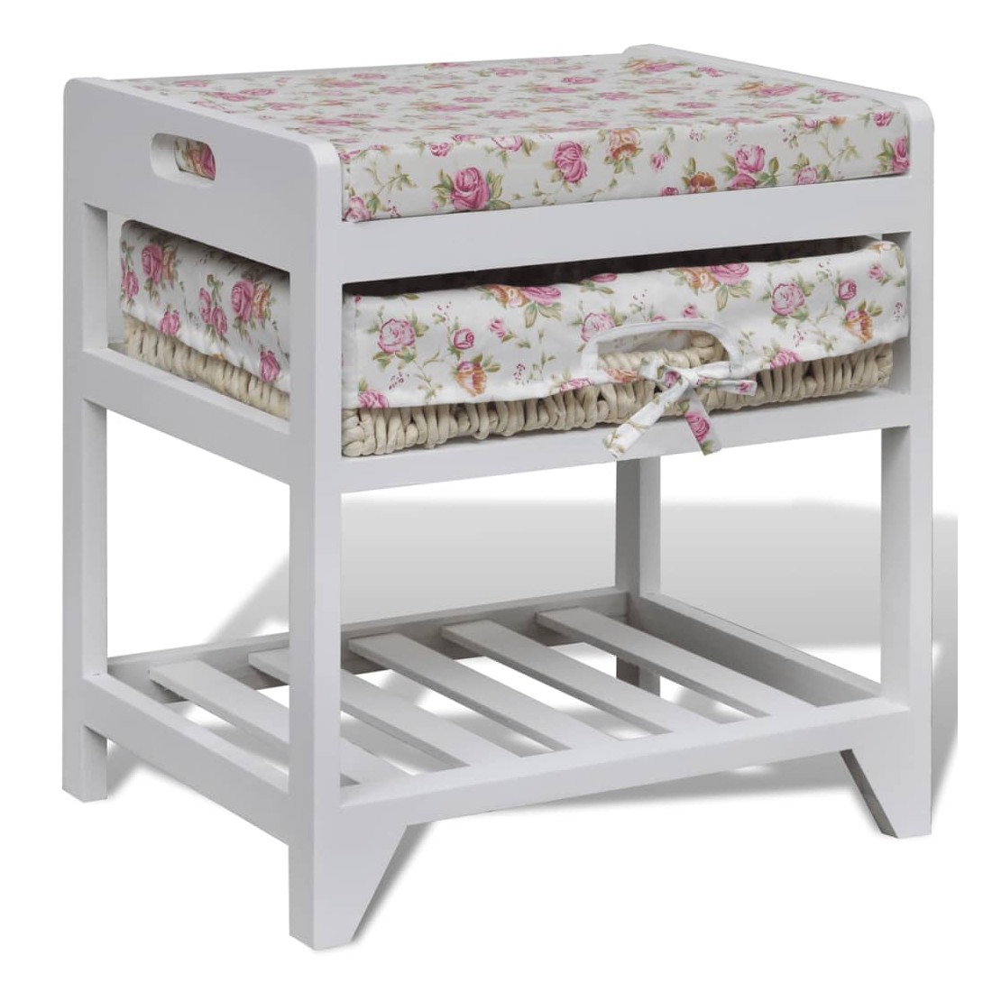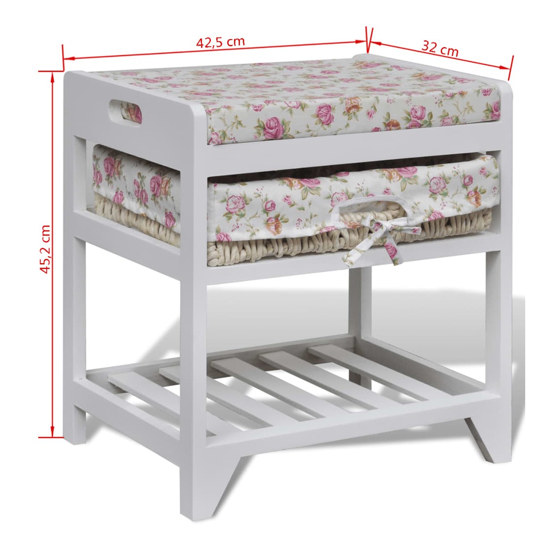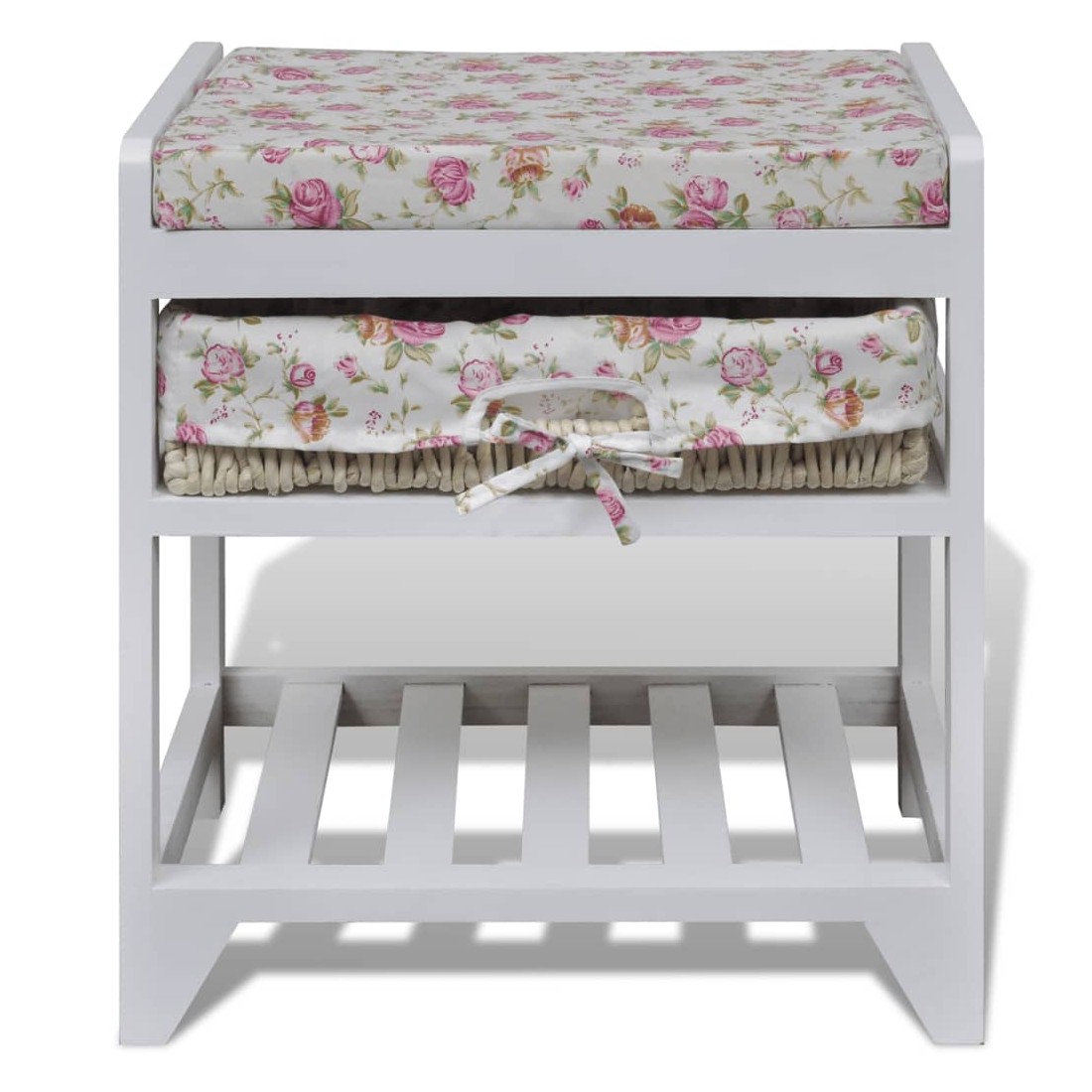 Ce banc de rangement en bois comprend un coussin de siège rembourré épais, un panier de rangement et un support à chaussures. Il sera un siège pratique pour mettre vos chaussures ou les enlever. En raison de sa taille compacte, il peut être placé même dans des passages étroits. Grâce à son joli motif fleuri, il ajoutera une touche romantique à votre décoration intérieure. Fabriqué en bois de paulownia de qualité, le banc est très durable.