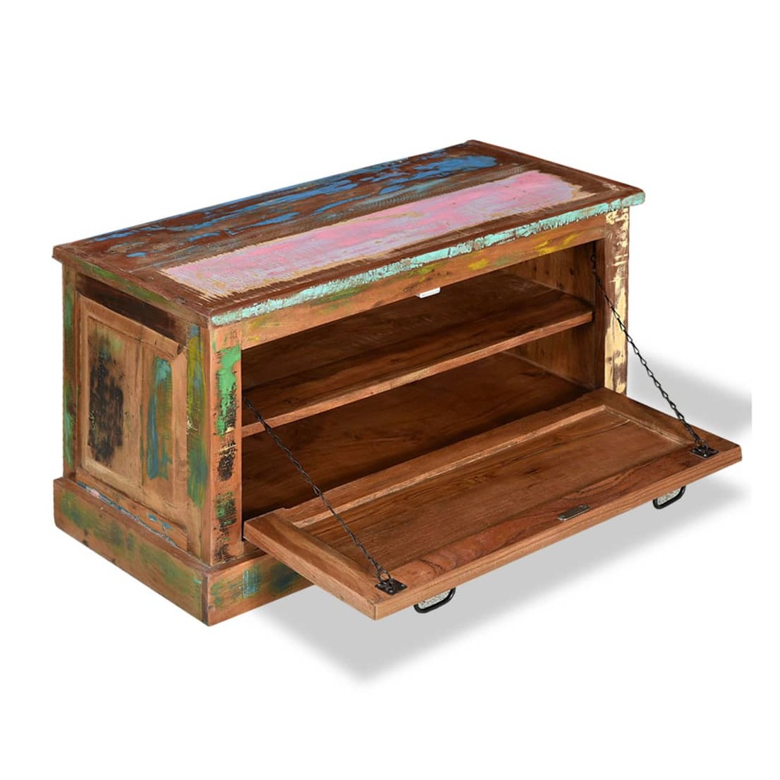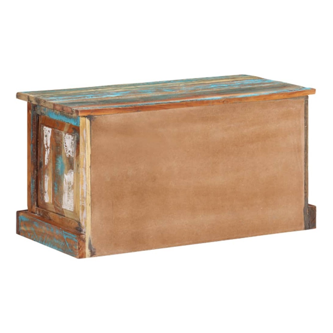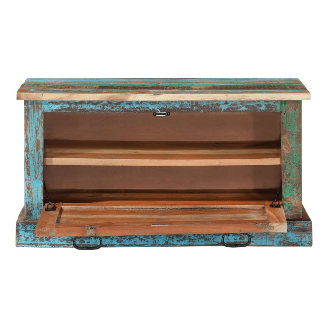 Ce banc de rangement à chaussures en bois a un aspect unique et vous permet de vous asseoir confortablement tout en enlevant vos chaussures ou en les enfilant. Avec 2 grands compartiments intérieurs, ce banc constitue un endroit très pratique pour ranger vos chaussures. Fait en bois de récupération, ce banc d'entrée est solide, durable et beau, et a les caractéristiques de différents bois comme le teck, le bois de manguier, l'acacia, etc. Chaque pièce est unique et légèrement différente l'une de l'autre. Les signes d'usure et la structure de grain visible donnent à chaque pièce un aspect unique et ajoutent à son style vintage spectaculaire. Ce banc avec rangement à chaussures est fait à la main. Chaque étape du processus est réalisée avec le plus grand soin, que ce soit le polissage, la peinture ou le laquage. L'article est déjà assemblé ; aucun assemblage n'est requis. Remarque : Les couleurs peuvent varier d'un meuble à l'autre, ce qui rend chacun de nos bancs unique. La livraison est aléatoire.