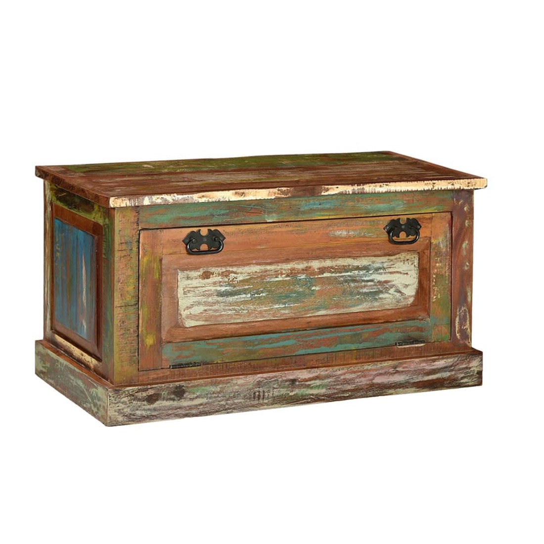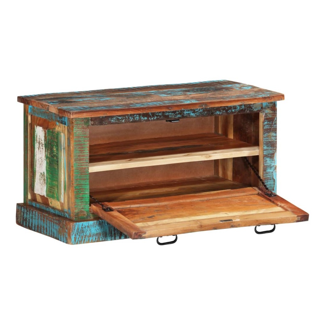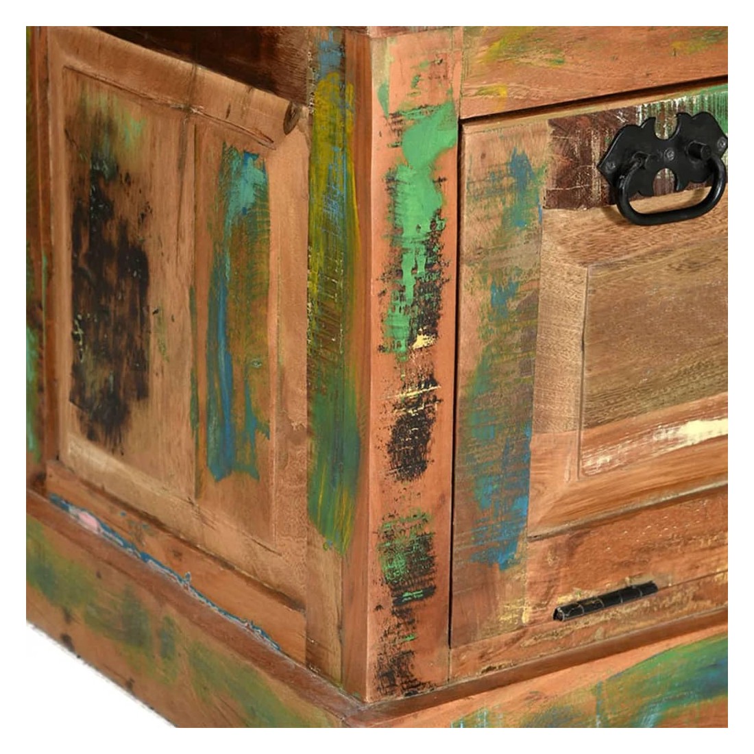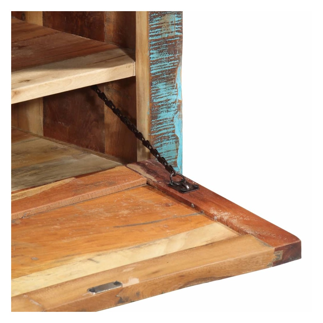 Ce banc de rangement à chaussures en bois a un aspect unique et vous permet de vous asseoir confortablement tout en enlevant vos chaussures ou en les enfilant. Avec 2 grands compartiments intérieurs, ce banc constitue un endroit très pratique pour ranger vos chaussures. Fait en bois de récupération, ce banc d'entrée est solide, durable et beau, et a les caractéristiques de différents bois comme le teck, le bois de manguier, l'acacia, etc. Chaque pièce est unique et légèrement différente l'une de l'autre. Les signes d'usure et la structure de grain visible donnent à chaque pièce un aspect unique et ajoutent à son style vintage spectaculaire. Ce banc avec rangement à chaussures est fait à la main. Chaque étape du processus est réalisée avec le plus grand soin, que ce soit le polissage, la peinture ou le laquage. L'article est déjà assemblé ; aucun assemblage n'est requis. Remarque : Les couleurs peuvent varier d'un meuble à l'autre, ce qui rend chacun de nos bancs unique. La livraison est aléatoire.