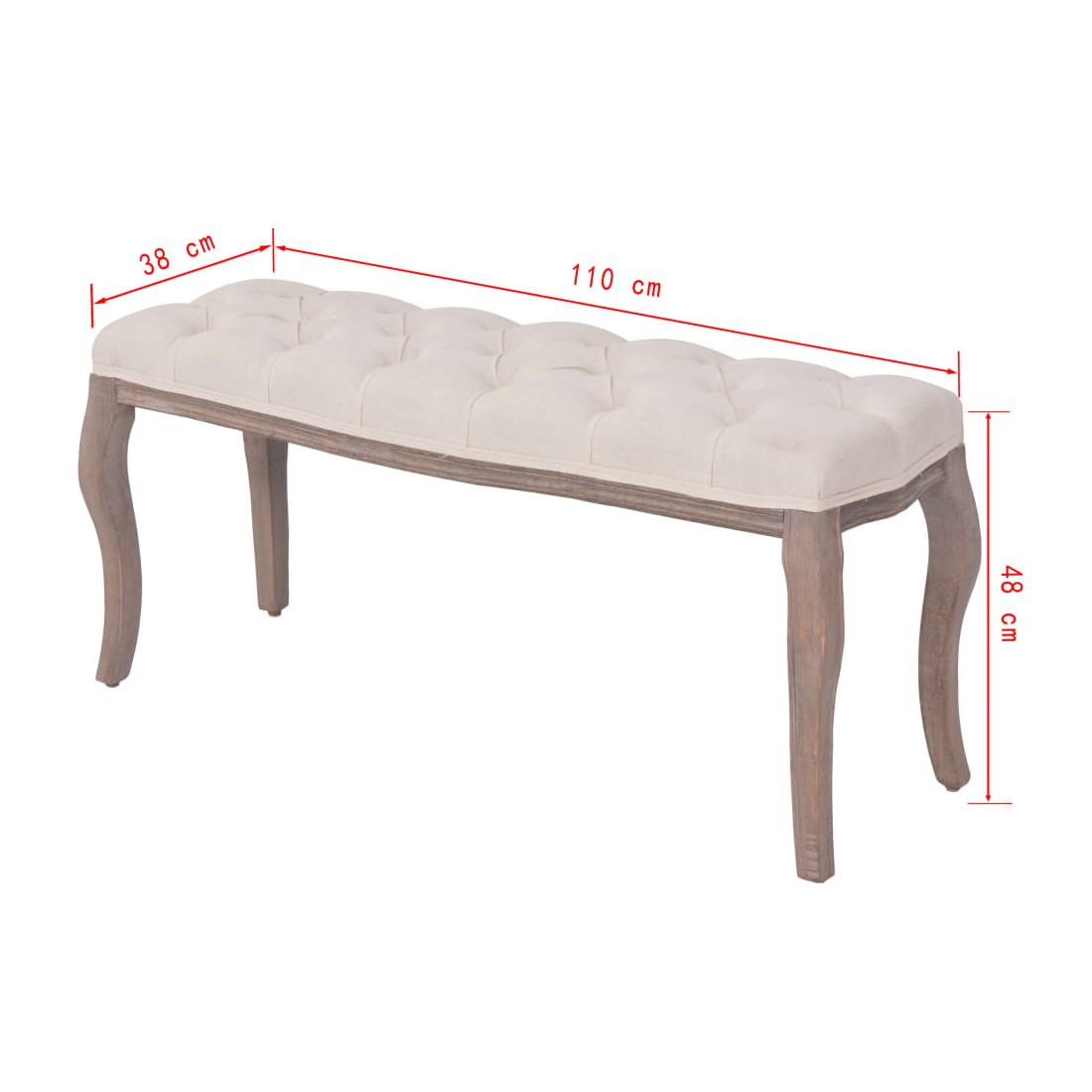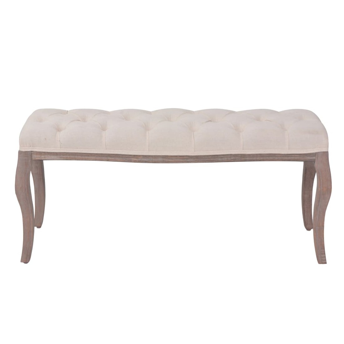 Ce banc luxueusement rembourré dégage un charme antique et sera un excellent supplément au décor de votre maison. Ce banc de conception classique a un charme raffiné grâce à son cadre en bois solide avec d'élégantes jambes en cabriole. La tapisserie en lin généreusement rembourrée et de haute qualité rendent le banc confortable et élégant. L'assemblage est facile.