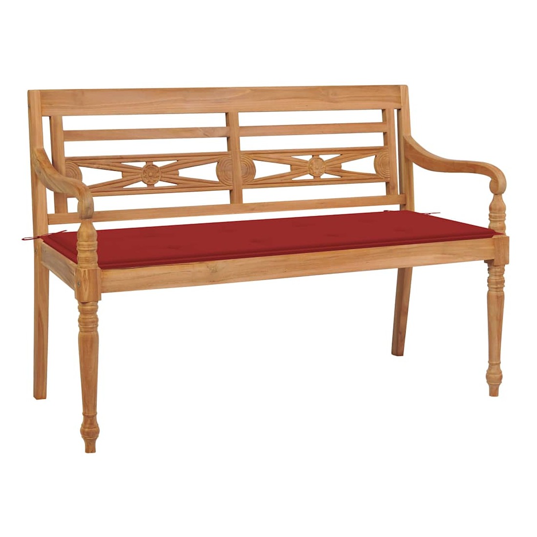 Banc Batavia avec coussin rouge 120 cm Bois de teck massif