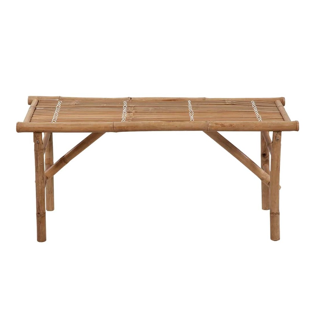 Ce banc classique en bambou sera un excellent supplément à votre jardin ou à tout autre espace extérieur. Le banc d'extérieur est pliable, donc portable, et peut être facilement rangé ou mis en place. Fabriqué en bambou résistant aux intempéries et imperméable, le banc de jardin est durable et stable. Il est également facile à nettoyer avec un chiffon humide. De plus, le coussin inclus offre un confort supplémentaire tout en vous prélassant. Il est fabriqué en 100 % polyester qui a été traité pour le rendre imperméable. Chaque coussin est doté de deux jeux de cordes pour le fixer solidement sur le banc.