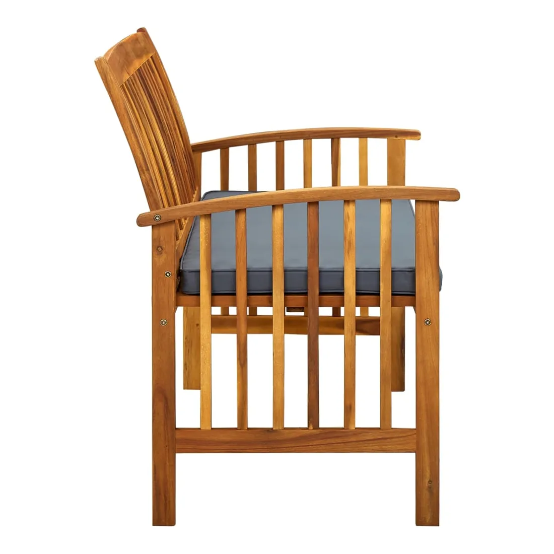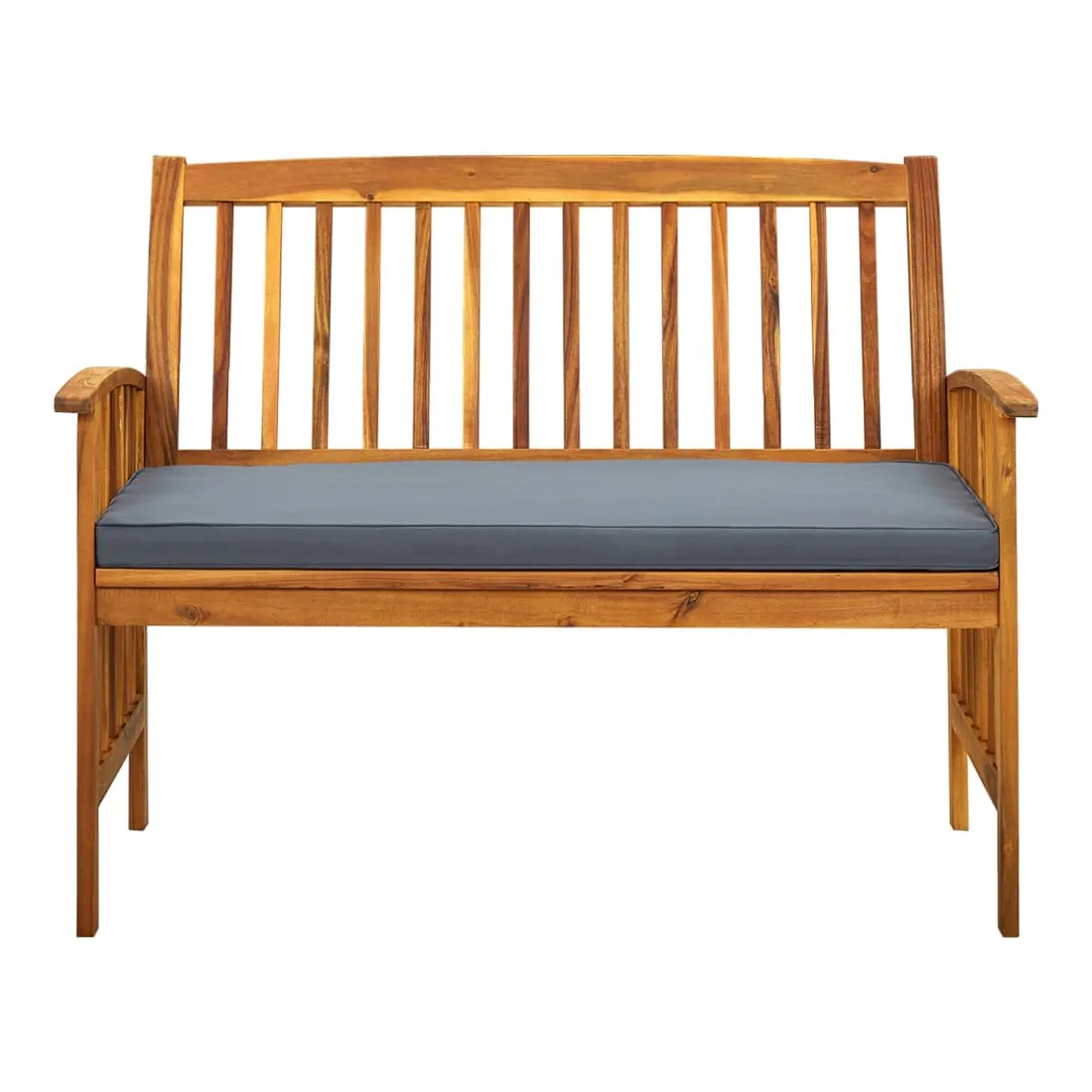Cet élégant banc de jardin ajoutera une touche de charme rustique à votre patio ou à tout autre espace de vie extérieur ! Le banc avec accoudoirs est fabriqué en bois d’acacia massif, un bois dur tropical, qui est résistant aux intempéries et très durable. Grâce à la finition à l'huile, le siège de patio a une couleur chaude et est facile à nettoyer et à entretenir. De plus, le coussin inclus avec un rembourrage épais offre un confort ultime. Remarque : afin de prolonger la durée de vie des meubles d'extérieur, nous vous recommandons de les protéger avec une housse imperméable.