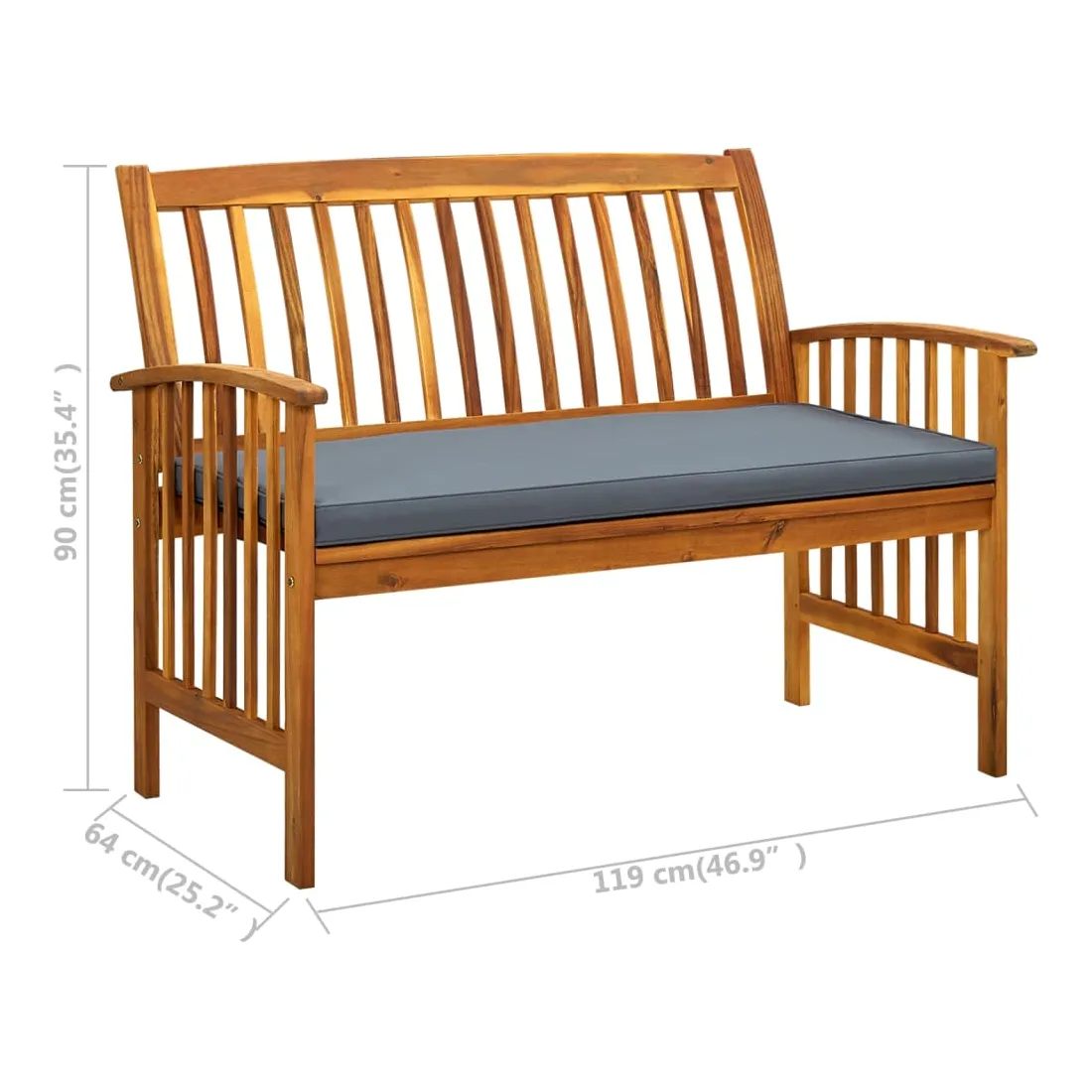 • Dimensions du banc : 119 x 64 x 90 cm (l x P x H)