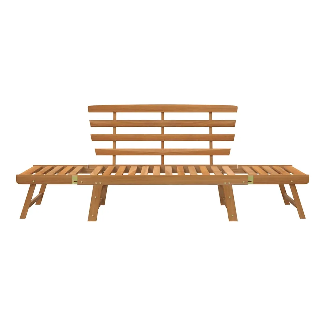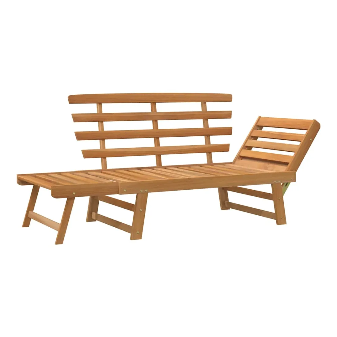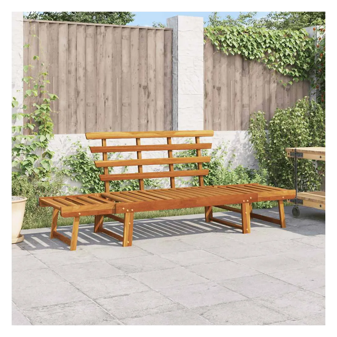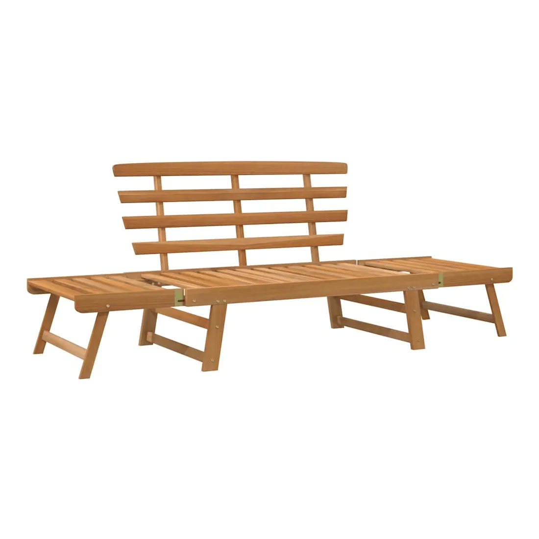 Ce banc de jardin d'extérieur 2 en 1 combine le style et la fonctionnalité et va devenir le point central de votre jardin ou terrasse. Ce transat est fabriqué en bois d'acacia massif, un bois dur tropical, qui est résistant aux intempéries et recouvert d'une légère couche d'huile. Il convient donc à un usage extérieur. La chaise longue peut être transformée d'un banc en un lit de jour et revenir rapidement et facilement grâce aux côtés réglables. Remarque : afin de prolonger la durée de vie des meubles d'extérieur, nous vous recommandons de les protéger avec une housse imperméable.