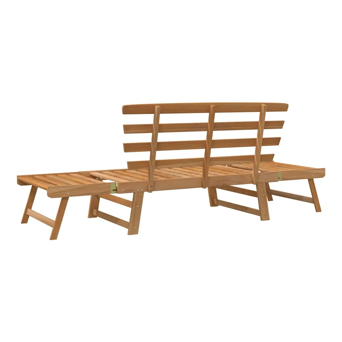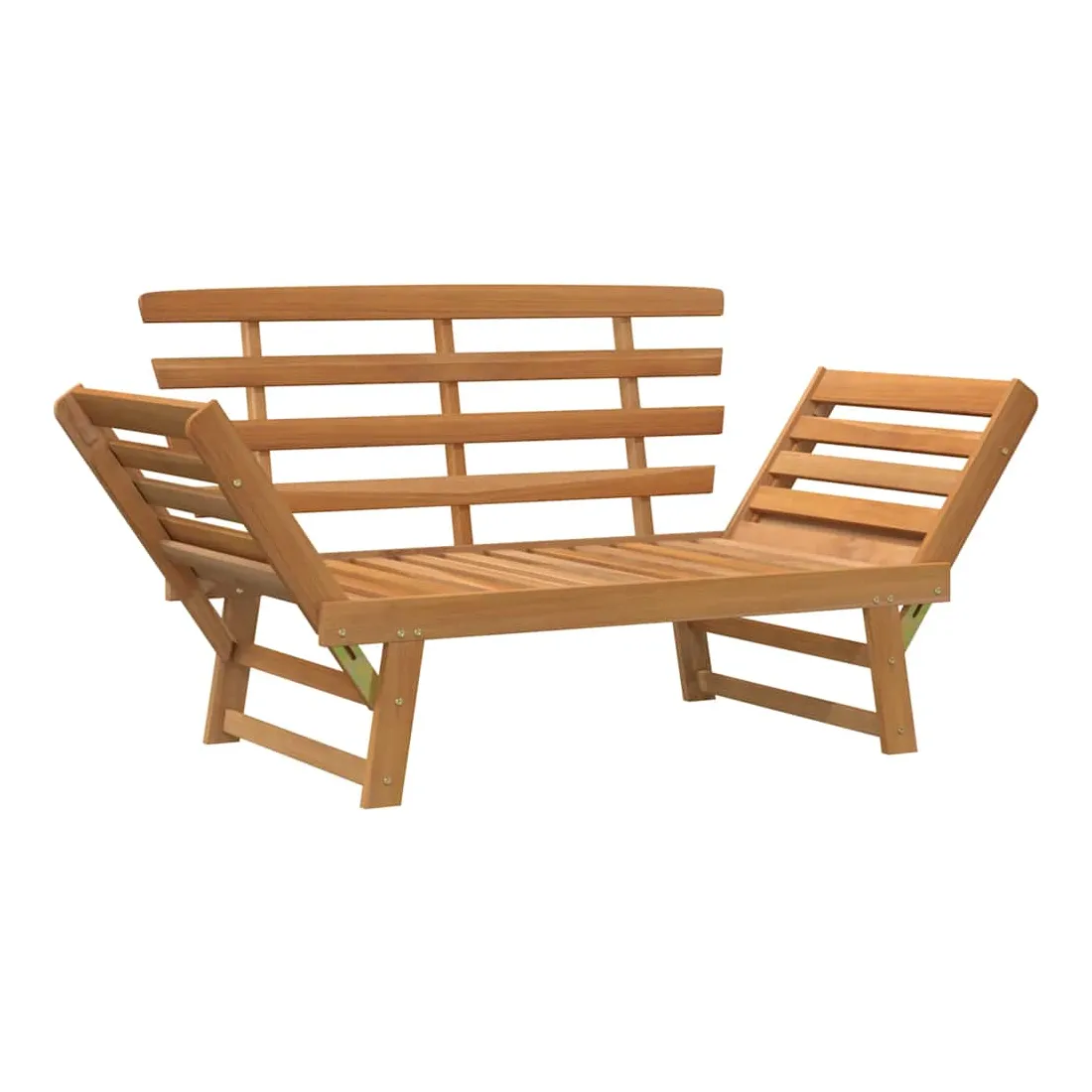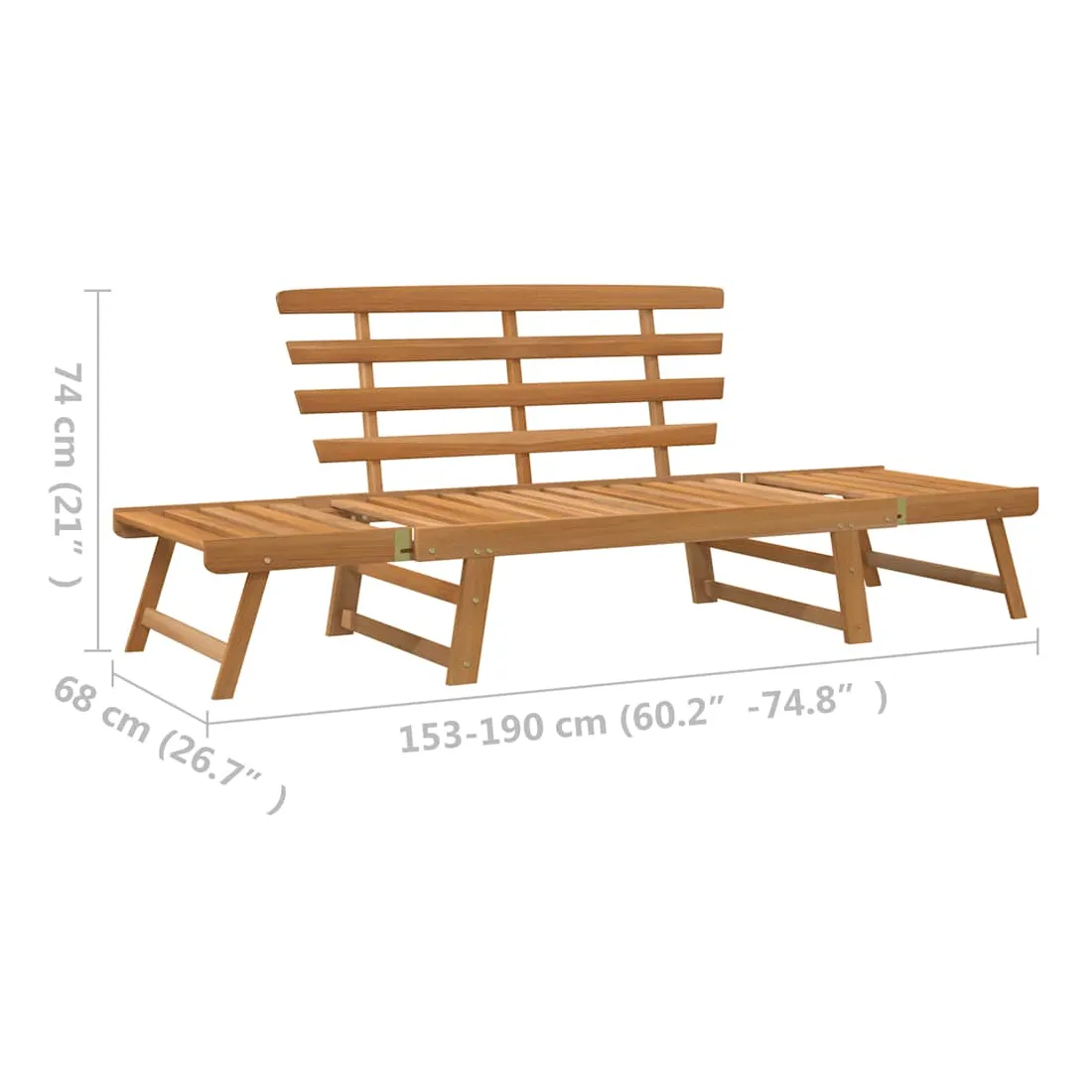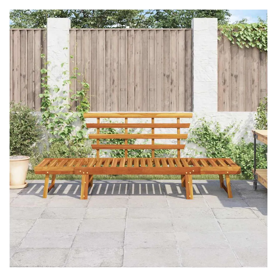 Ce banc de jardin d'extérieur 2 en 1 combine le style et la fonctionnalité et va devenir le point central de votre jardin ou terrasse. Ce transat est fabriqué en bois d'acacia massif, un bois dur tropical, qui est résistant aux intempéries et recouvert d'une légère couche d'huile. Il convient donc à un usage extérieur. La chaise longue peut être transformée d'un banc en un lit de jour et revenir rapidement et facilement grâce aux côtés réglables. Remarque : afin de prolonger la durée de vie des meubles d'extérieur, nous vous recommandons de les protéger avec une housse imperméable.