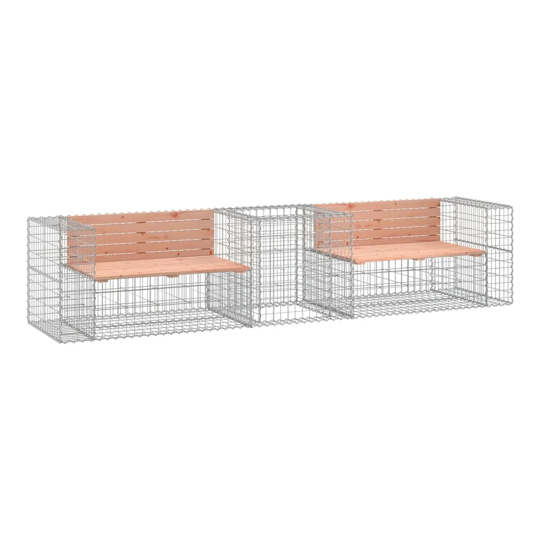 Ce banc de jardin avec panier en gabion seront un véritable accroche-regard dans votre espace de vie extérieur. Bois de douglas massif : le dessus du siège de jardin est fabriqué en bois de douglas massif pour plus de durabilité. Le bois de douglas est également suffisamment solide pour être travaillé avec un minimum de soin, même sous l'influence des intempéries.Base robuste et stable : le banc d'extérieur est doté d'une base en gabion en acier galvanisé conçue pour être remplie de roches et de graviers pour plus de beauté. La grille maillée du panier de gabion est soudée avec des fils transversaux et longitudinaux à chaque intersection pour une stabilité supplémentaire.Design compact : le banc de jardin est parfait pour un espace limité grâce à son design étroit et compact.Large éventail d'utilisations : le banc de parc convient aux jardins, arrière-cours, terrasses, coins secrets et à bien d'autres endroits. Bon à savoir :Ce produit est assemblé par 2 bancs de jardin et un panier en gabion.