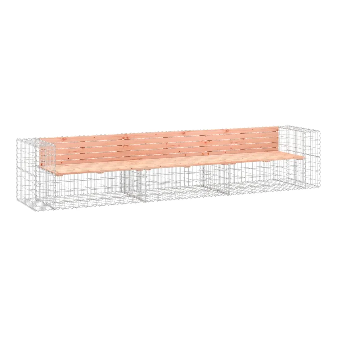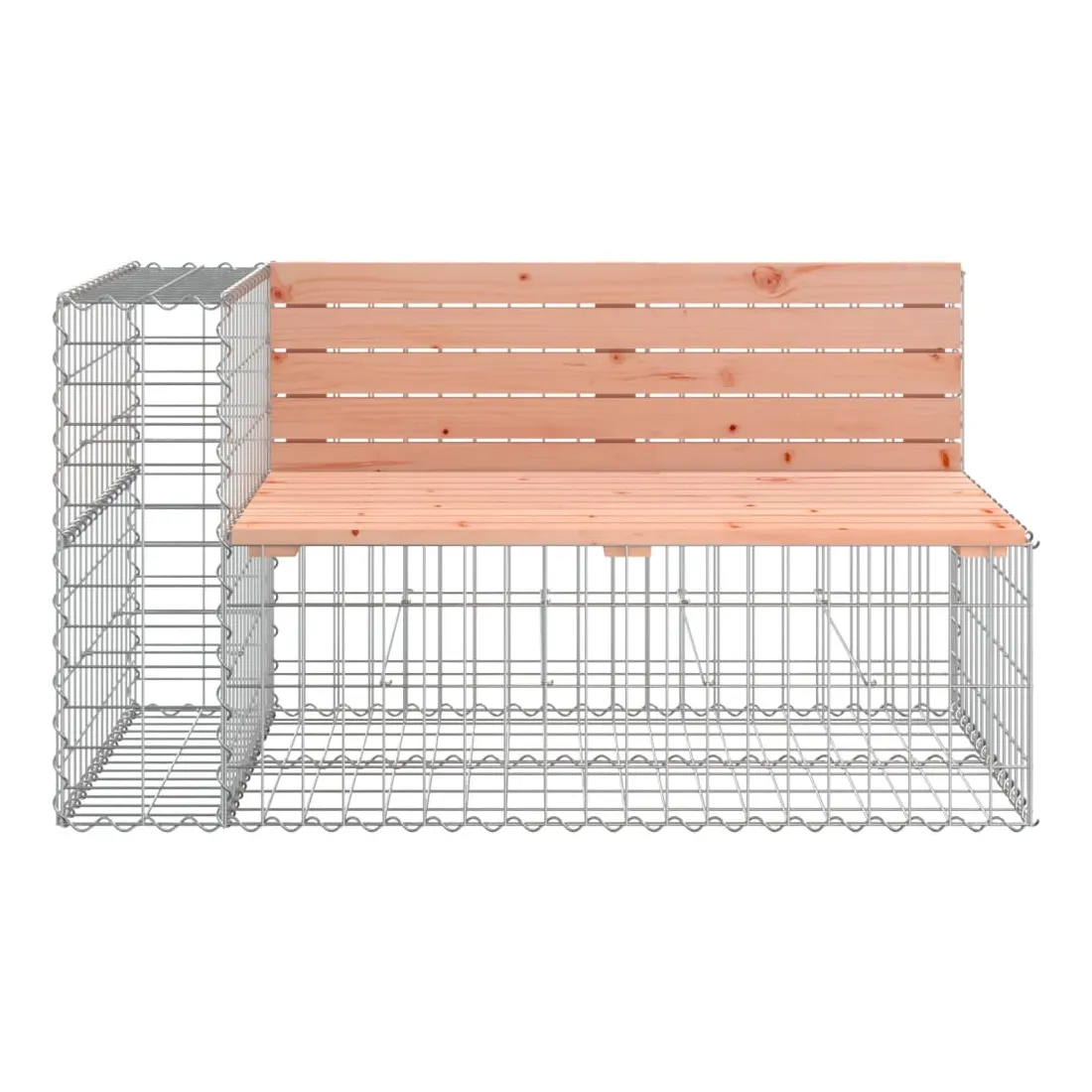 Créez votre propre espace extérieur avec ce banc de jardin ! Ce banc de jardin attirera tous les regards dans votre espace de vie extérieur. Bois de douglas massif : le dessus du siège de jardin est fabriqué en bois de douglas massif pour plus de durabilité. Le bois de douglas est également suffisamment solide pour être travaillé avec un minimum de soin, même sous l'influence des intempéries.Base robuste et stable : le banc d'extérieur est doté d'une base en gabion en acier galvanisé conçue pour être remplie de roches et de graviers pour plus de beauté. La grille maillée du panier de gabion est soudée avec des fils transversaux et longitudinaux à chaque intersection pour une stabilité supplémentaire.Design compact : le banc de jardin est parfait pour un espace limité grâce à son design étroit et compact.Large éventail d'utilisations : le banc de parc convient aux jardins, arrière-cours, terrasses, coins secrets et à bien d'autres endroits. Bon à savoir :Ce produit est assemblé par 2 bancs de jardin (angle) et un banc de jardin (central).