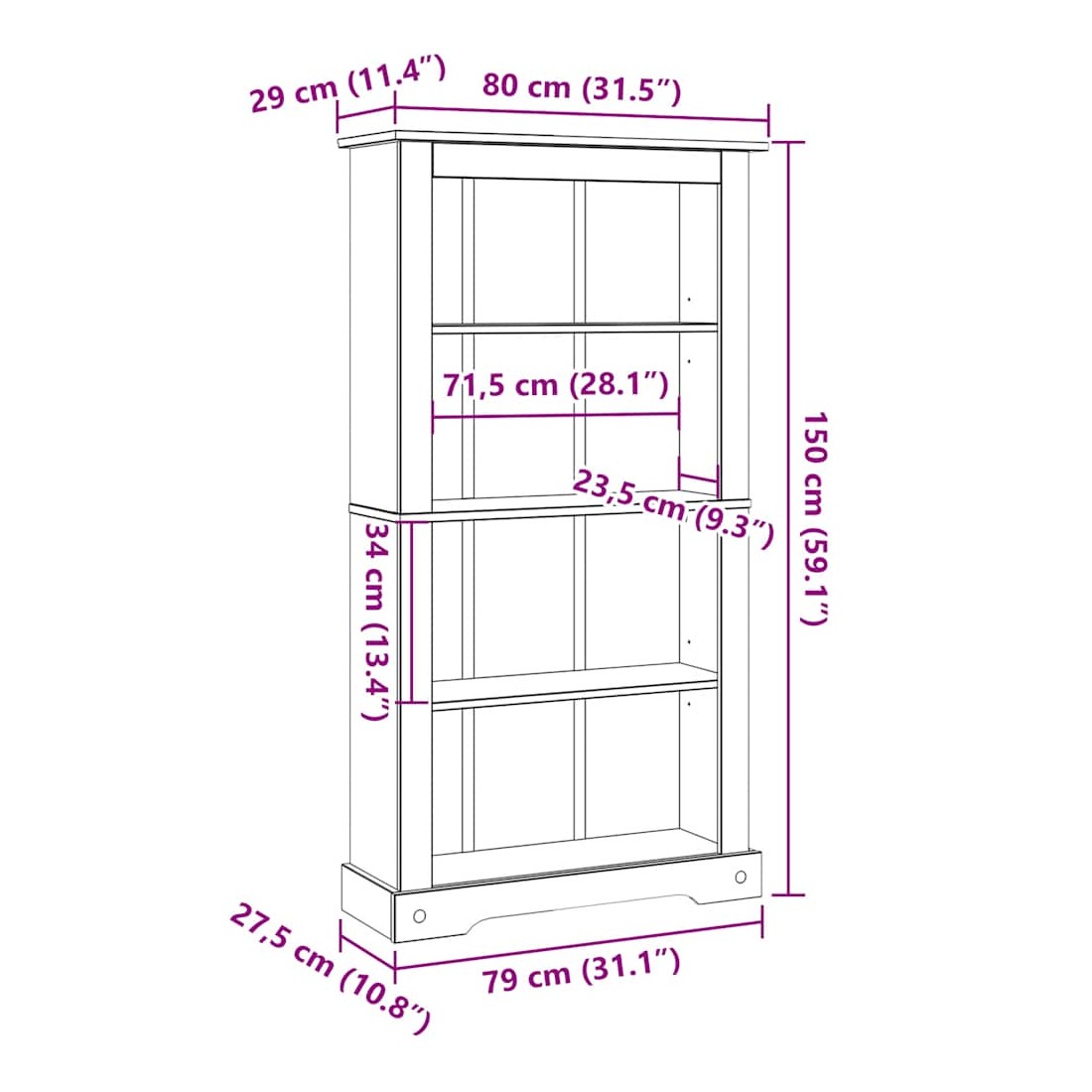 - Dimensions : 80 x 29 x 150 cm (l x P x H)