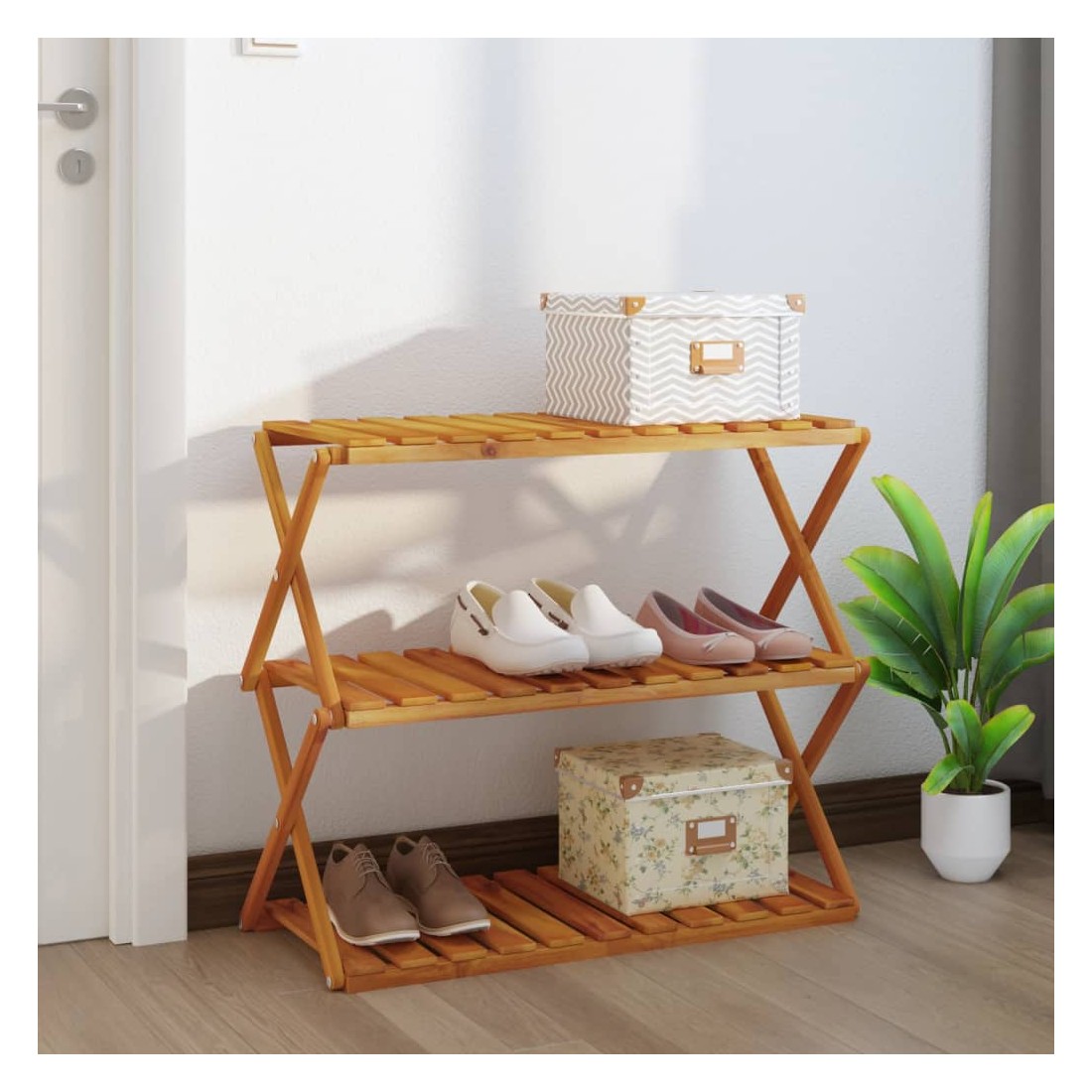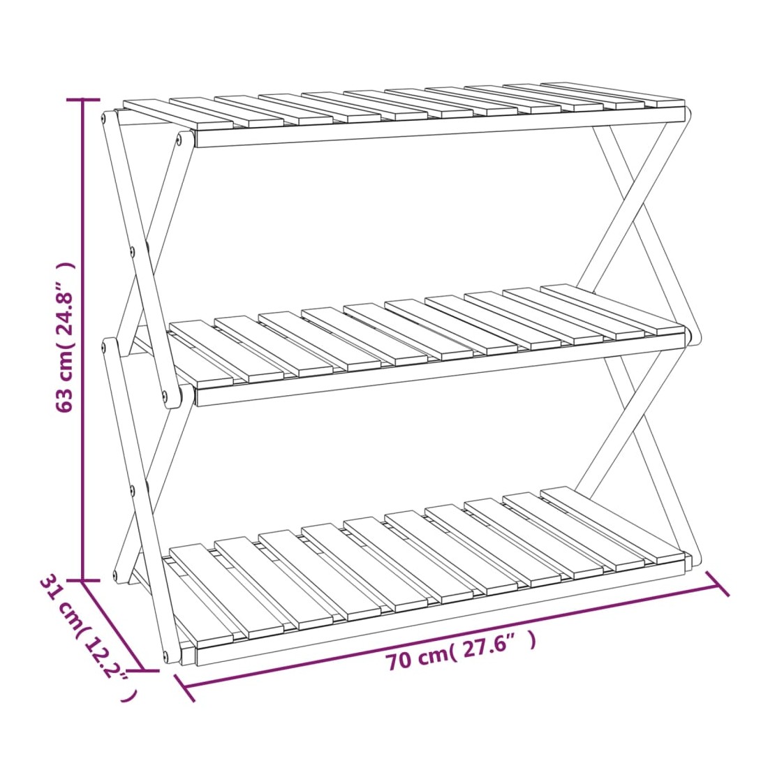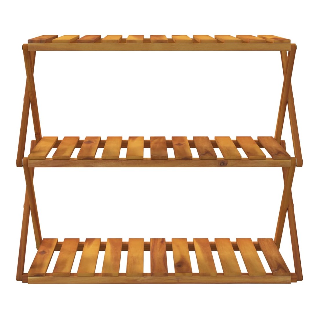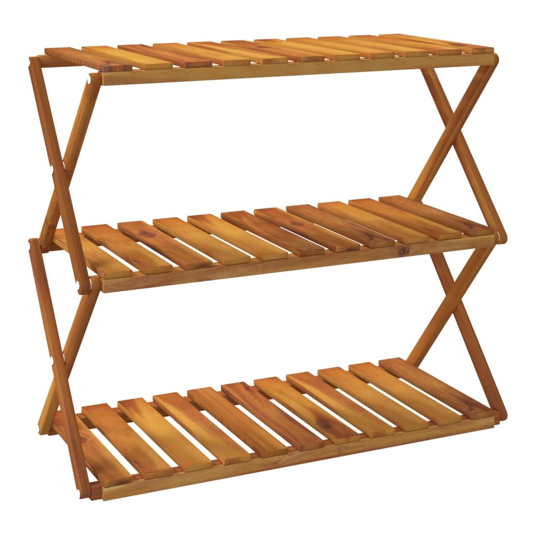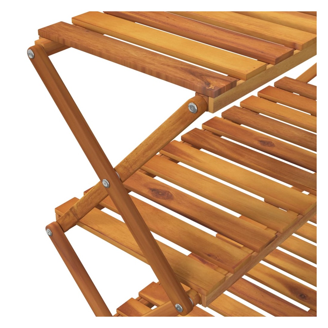 Cette étagère pliable en bois à 3 niveaux est un choix parfait à utiliser dans votre salon, cuisine, couloir, salle de bain, balcon ou partout où vous avez besoin de rangement supplémentaire. Bois d'acacia massif : le bois d'acacia massif est un matériau naturel magnifique. Le bois d'acacia un bois dur tropical, qui est dense, robuste et durable.Étagère polyvalente : l'étagère sur pied peut être utilisée comme un joli support de plantes, une étagère d'exposition rustique ou une étagère à chaussures soignée, selon vos préférences. De plus, elle peut être utilisée à la fois verticalement et horizontalement.Design pliable : l'étagère d'exposition peut être repliée pour faciliter son transport et son rangement. Attention :Afin d'éviter qu'il ne bascule, ce produit doit être utilisé avec le dispositif de fixation murale fourni. Remarque :Les couleurs peuvent varier d'une pièce à l'autre, rendant chaque pièce unique et légèrement différente l'une de l'autre. La livraison est aléatoire, ce qui garantit l'exclusivité et l'individualité de votre produit.Chaque produit est livré avec un manuel de montage dans la boîte pour un montage facile.