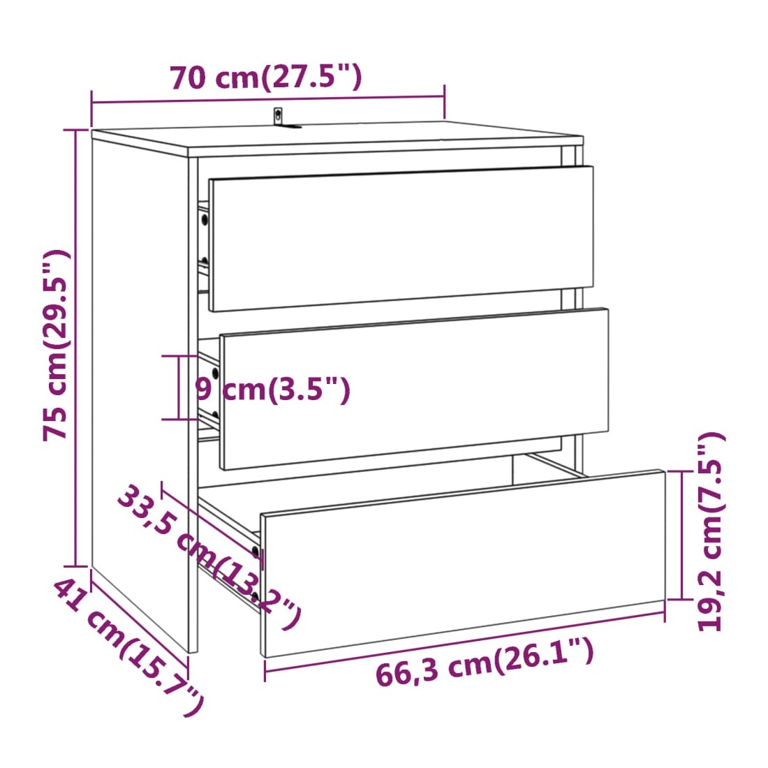 - Dimensions du buffet avec tiroirs : 70 x 41 x 75 cm (l x P x H)
