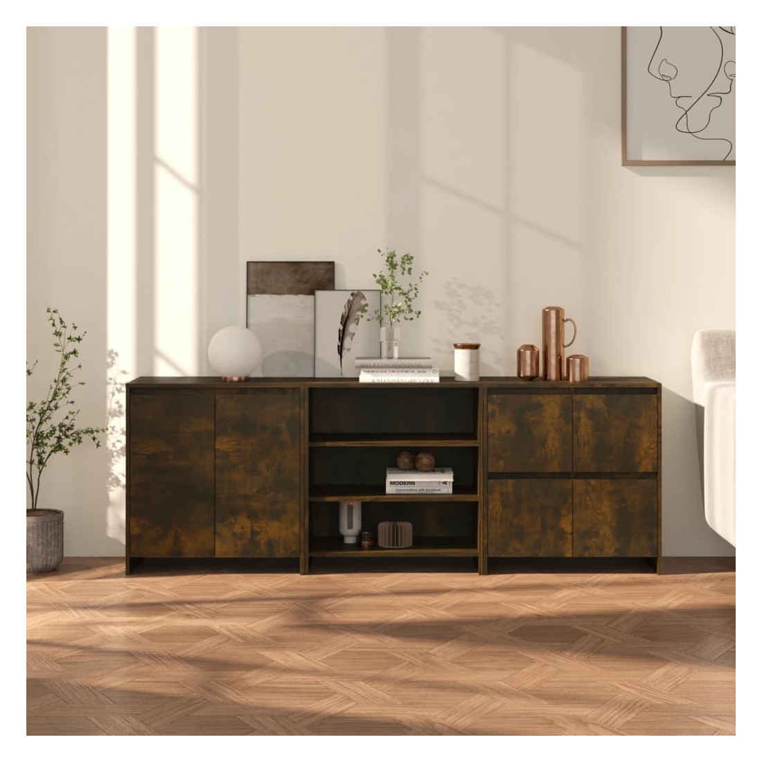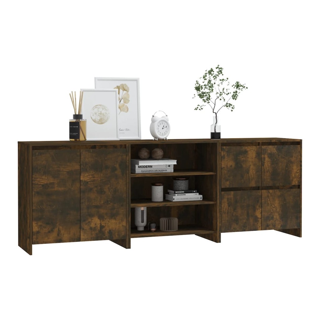 Ces buffets constituent un supplément décoratif et pratique parfait à votre décoration existante. Ces armoires latérales offrent un grand espace de rangement pour garder vos objets quotidiens organisés et à portée de main. Le dessus robuste est parfait pour exposer des objets décoratifs, des cadres photo et des plantes en pot. De plus, ces armoires de rangement sont faciles à nettoyer avec un chiffon humide.