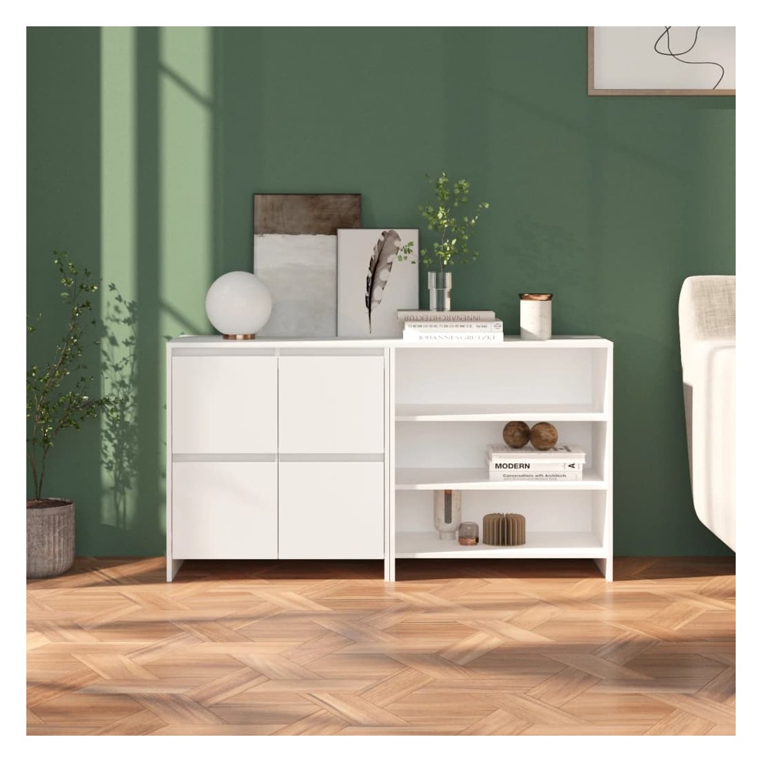 Ces buffets constituent un supplément décoratif et pratique parfait à votre décoration existante. Ces armoires latérales offrent un grand espace de rangement pour garder vos objets quotidiens organisés et à portée de main. Le dessus robuste est parfait pour exposer des objets décoratifs, des cadres photo et des plantes en pot. De plus, ces armoires de rangement sont faciles à nettoyer avec un chiffon humide.