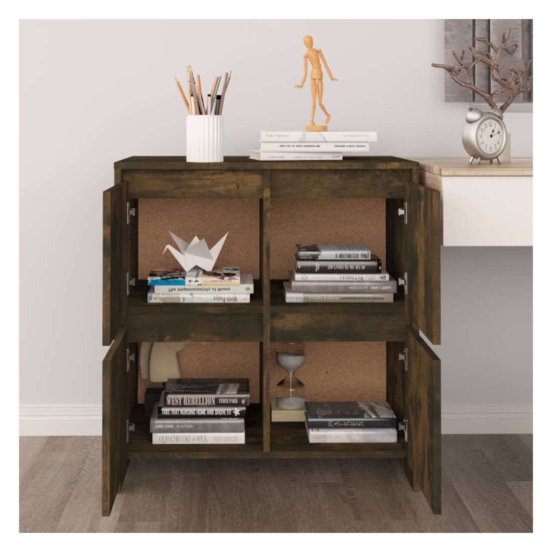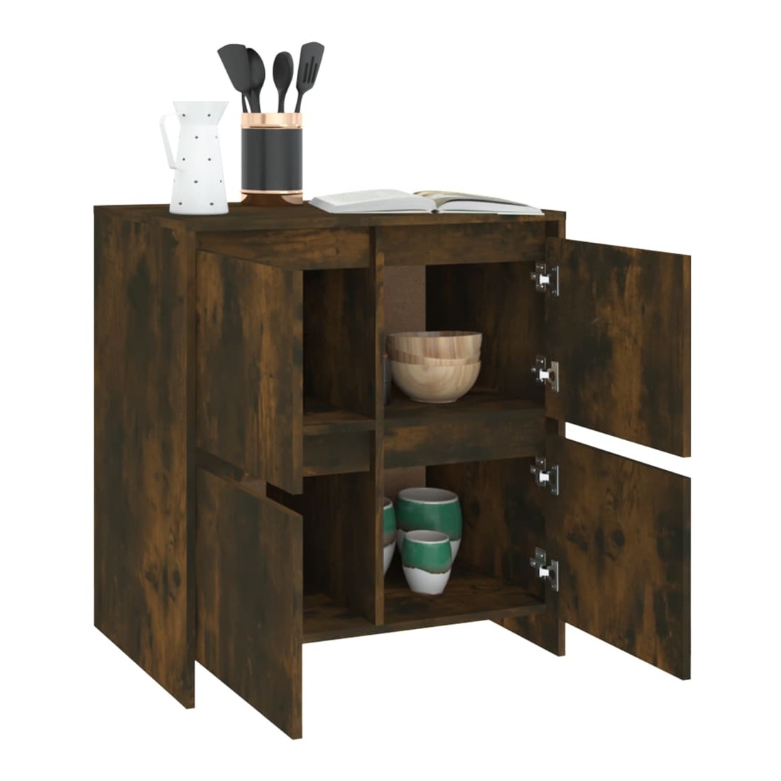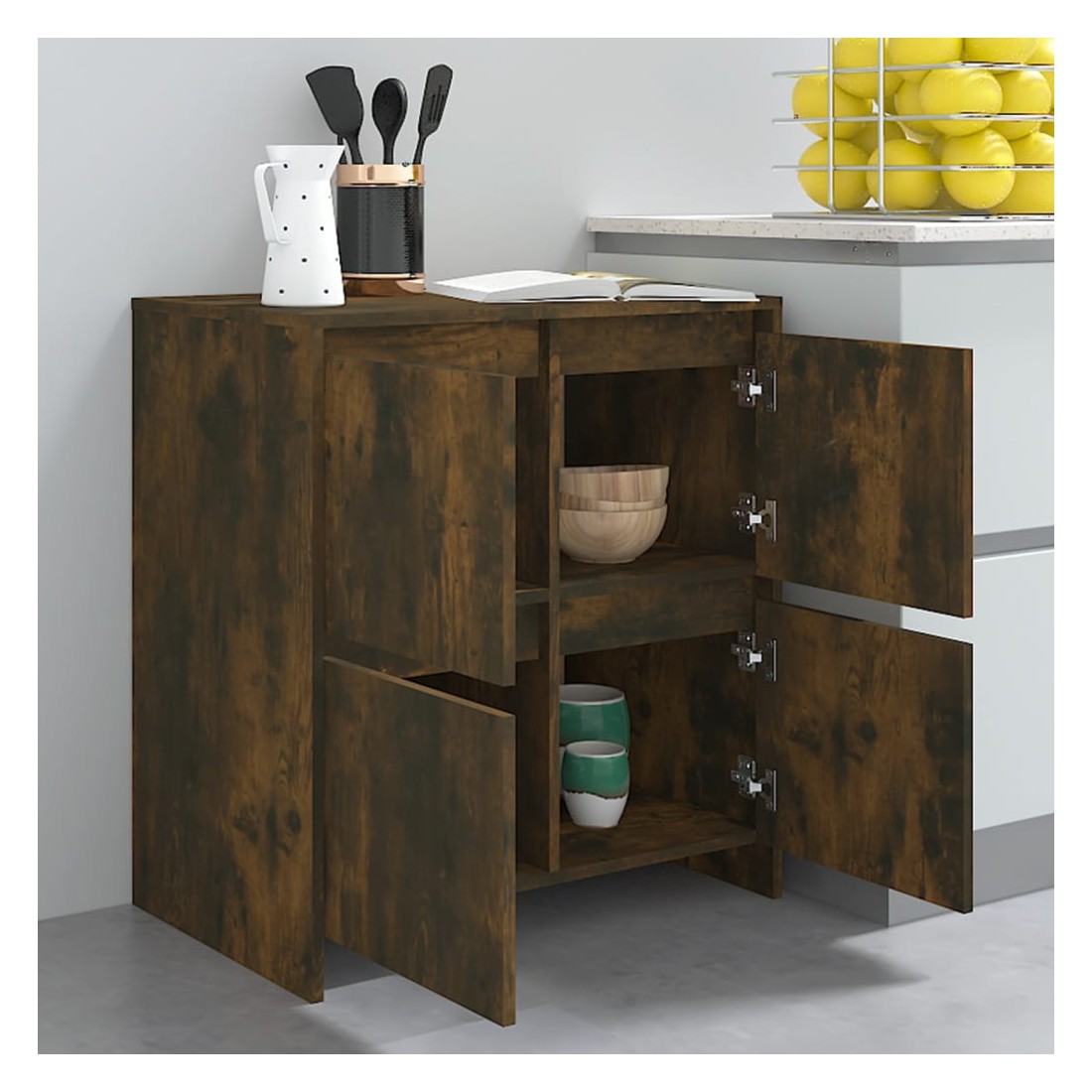 Ces buffets, dotés d'un design minimaliste, sont un supplément pratique mais également décoratif à votre maison. Avec 4 portes, l'armoire latérale offre un grand espace de rangement pour les livres, les appareils multimédia et d'autres articles. Le dessus de table robuste est idéal pour afficher des objets décoratifs, des cadres photo et des plantes en pot. De plus, l'armoire de rangement est facile à nettoyer avec un chiffon humide.