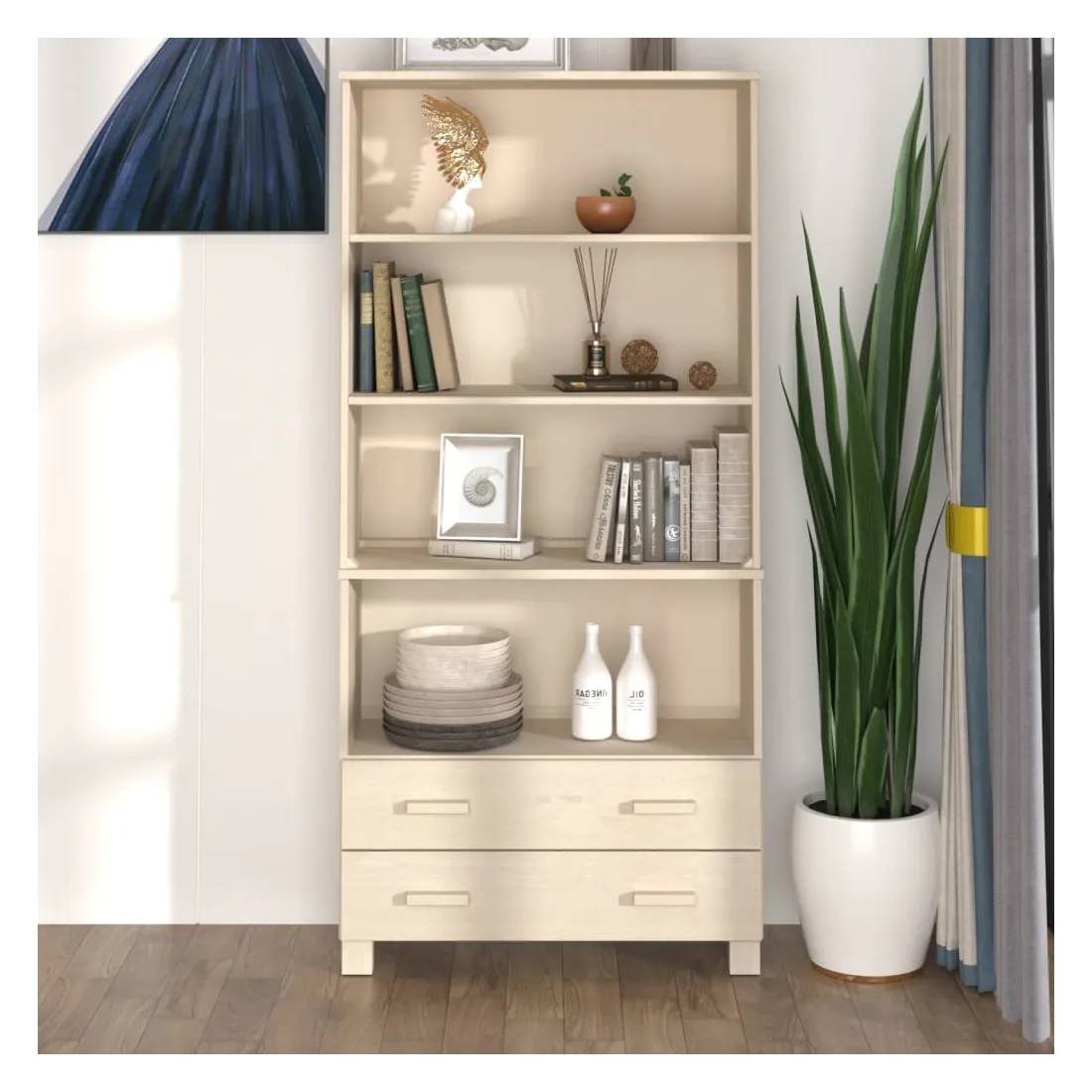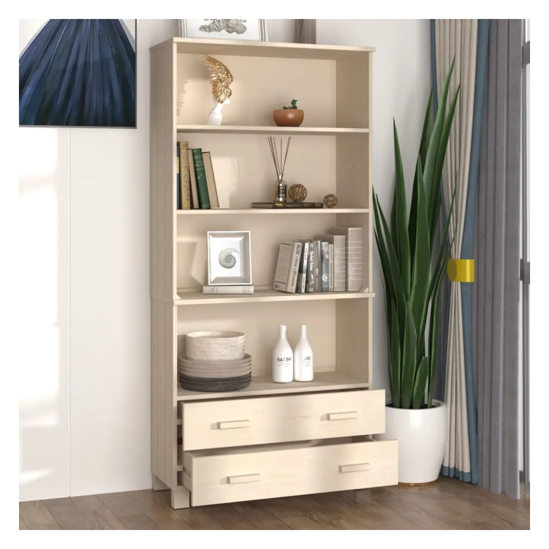 Introduisez un air de charme unique dans votre intérieur existant avec ce buffet en bois ! Matériau de première qualité : le bois de pin massif est un matériau naturel magnifique. Traitez la surface avec de l'huile, de la cire, de la laque ou une finition vitrée pour obtenir une surface plus résistante et un nettoyage facile. Le bois de pin a un grain droit et les nœuds donnent au matériau son aspect caractéristique et rustique.Cadre robuste et stable : le cadre en bois du buffet assure robustesse et stabilité.Grand espace de rangement : l'armoire latérale a des étagères ouvertes stables et des tiroirs coulissants, ce qui peut répondre à vos différents besoins de stockage. L'espace de rangement généreux facilite l'organisation. Attention :Afin d'éviter qu'il ne bascule, ce produit doit être utilisé avec le dispositif de fixation murale fourni.