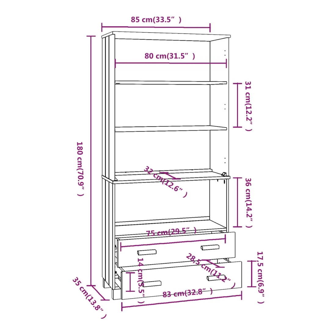 • Dimensions : 85 x 35 x 80 cm (l x P x H)