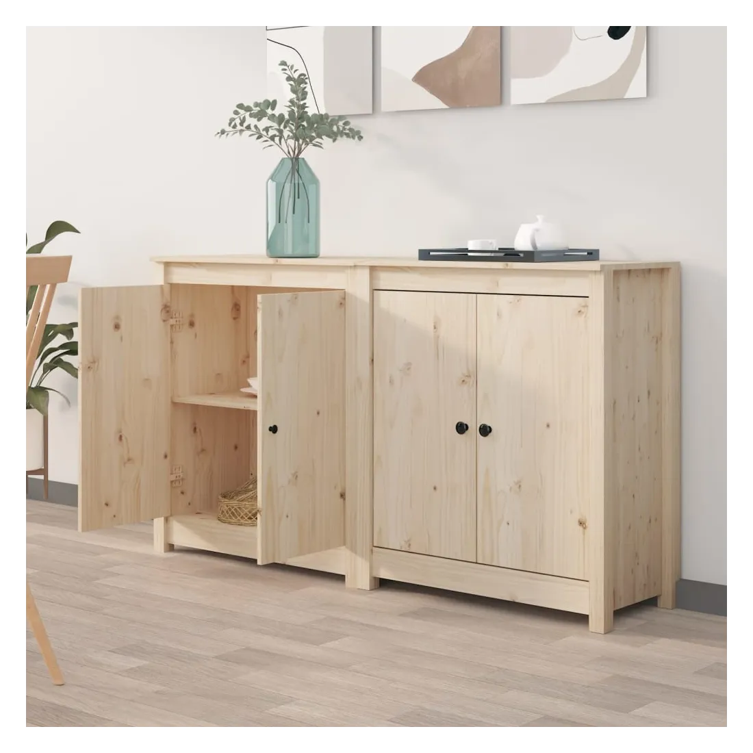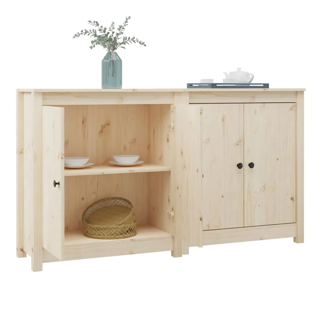 Profitez d'un salon bien rangé avec ces buffets en bois ! Ces buffets pratiques satisferont vos différentes exigences et se veulent un complément idéal dans votre pièce. Bois de pin massif : le bois de pin massif est un matériau naturel magnifique. Le bois de pin a un grain droit et les nœuds donnent au matériau son aspect caractéristique et rustique.Grand espace de rangement : l'armoire latérale offre un grand espace de rangement pour garder vos différents articles essentiels quotidiens bien organisés et facilement accessibles.Dessus robuste : le dessus robuste de cette armoire de rangement est idéal pour exposer des objets décoratifs, des cadres photo ou des plantes en pot. Attention :Afin d'éviter qu'il ne bascule, ce produit doit être utilisé avec le dispositif de fixation murale fourni.