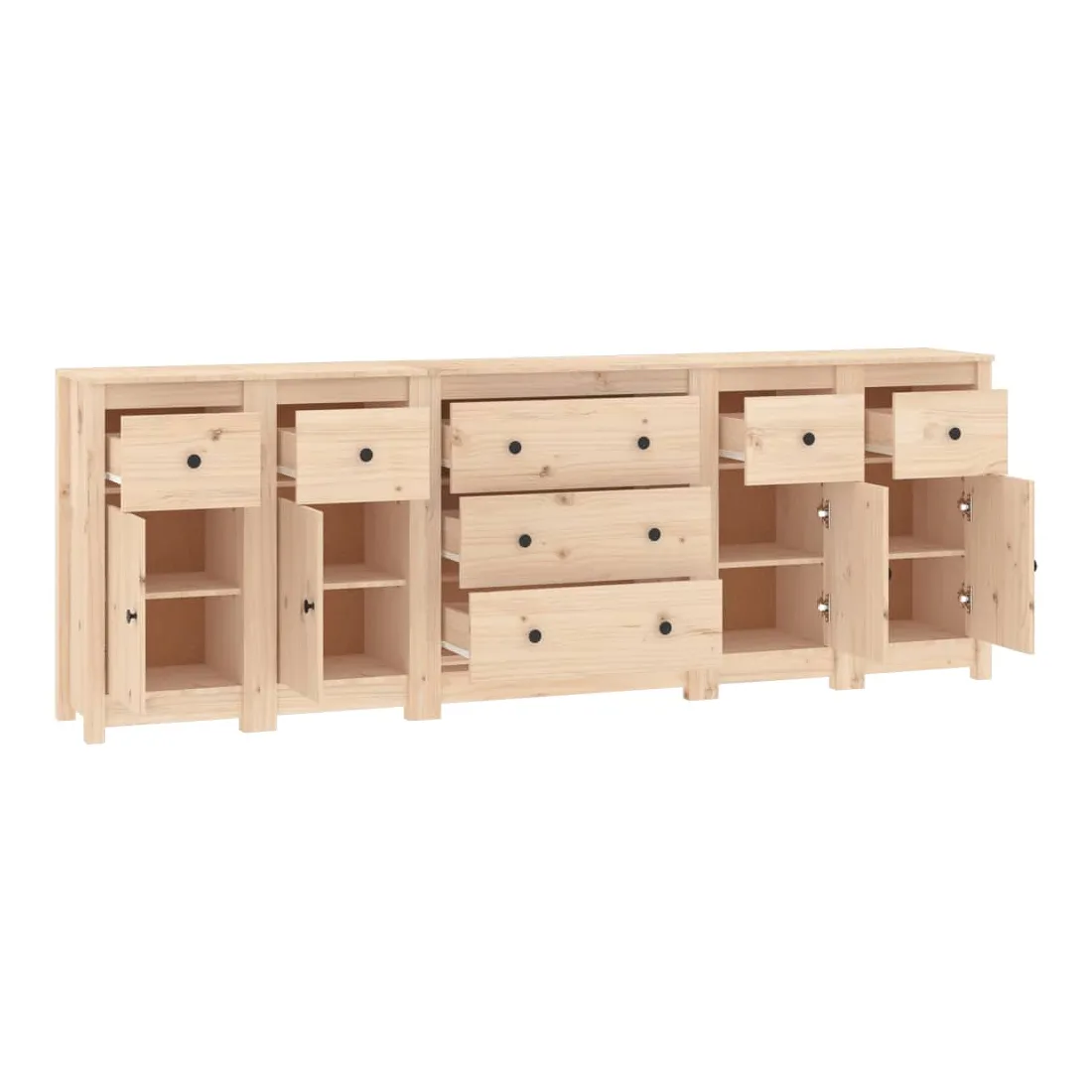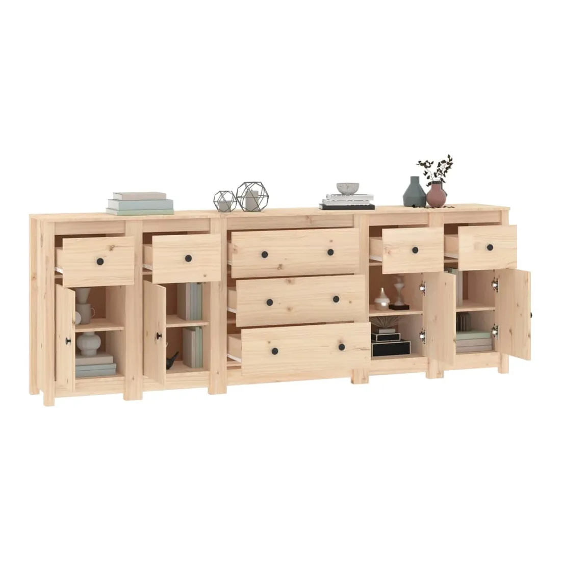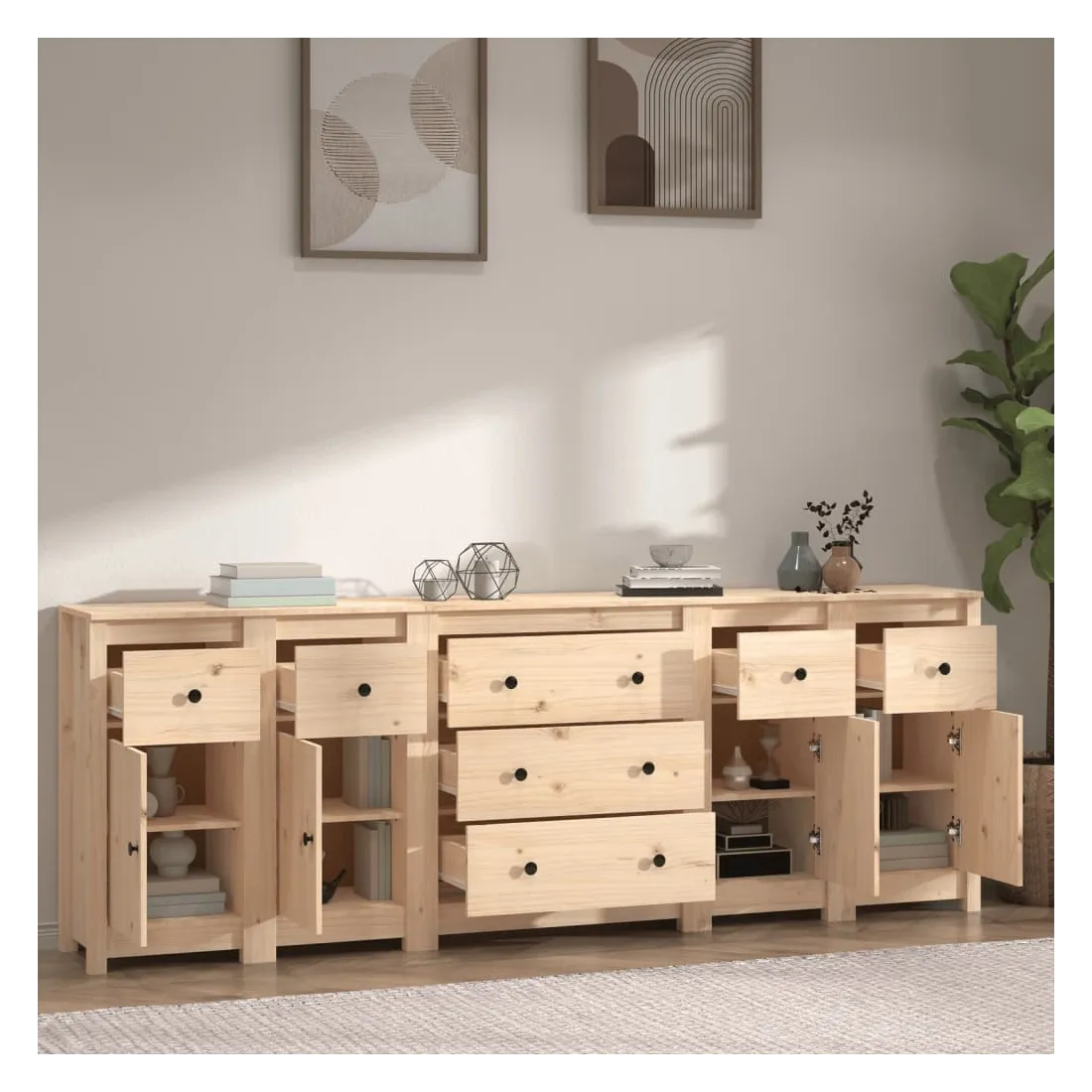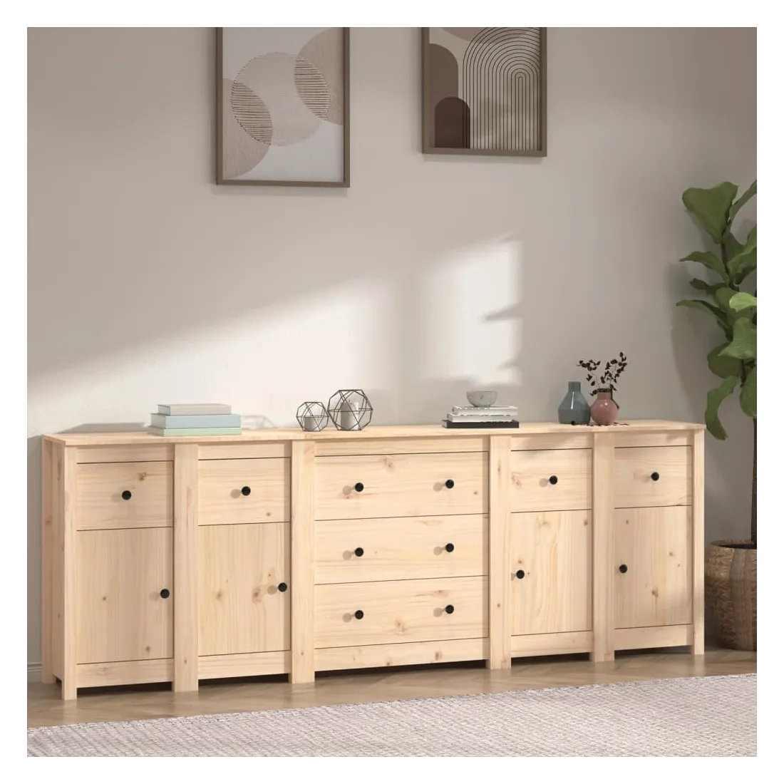 Rangez vos objets précieux de manière élégante. Ce buffet est idéal pour tout salon, chambre à coucher ou bureau moderne pour garder les objets nécessaires à portée de main. Bois de pin massif : le bois de pin massif est un matériau naturel magnifique. Le bois de pin a un grain droit et les nœuds donnent au matériau son aspect caractéristique et rustique. Grand espace de rangement : l'armoire offre un grand espace de rangement pour garder vos différents articles essentiels quotidiens bien organisés et facilement accessibles. Dessus robuste : le dessus robuste de cette armoire est idéal pour exposer des objets décoratifs, des cadres photo ou des plantes en pot. Attention : Afin d'éviter qu'il ne bascule, ce produit doit être utilisé avec le dispositif de fixation murale fourni. Remarque