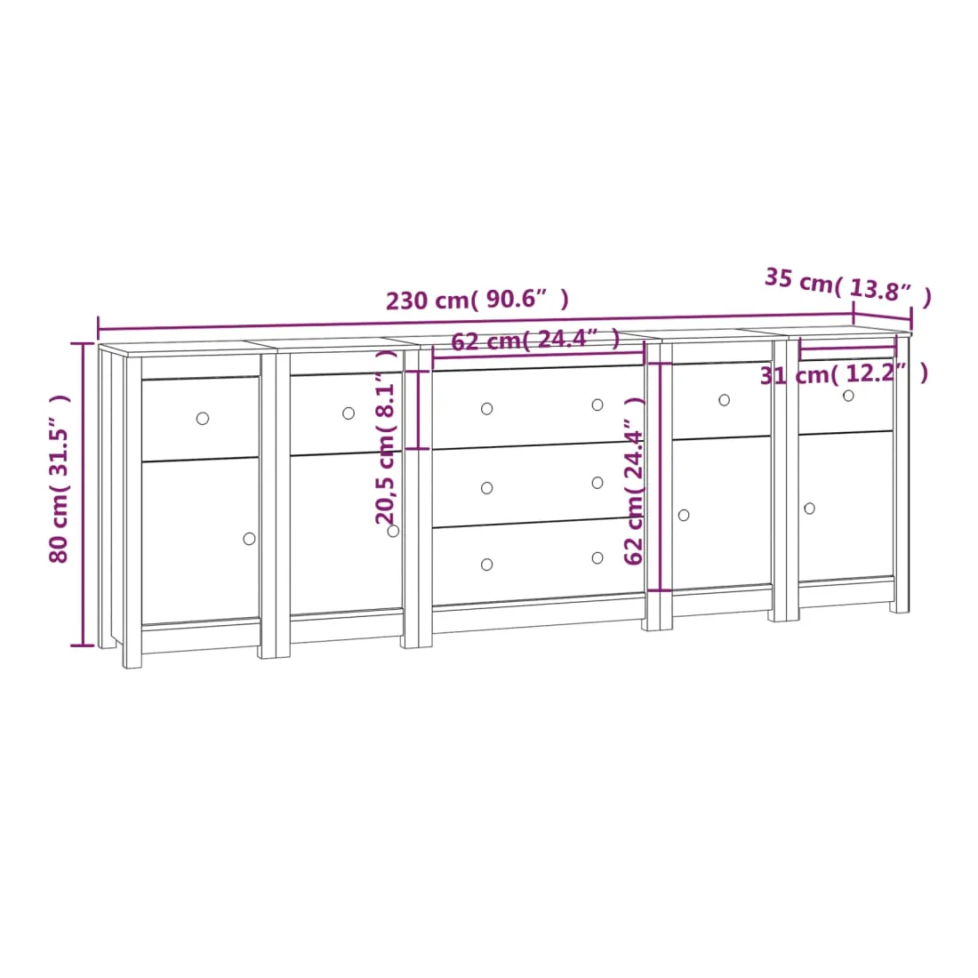 Buffet 230x35x80 cm Bois massif de pin