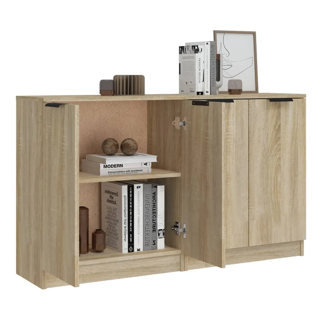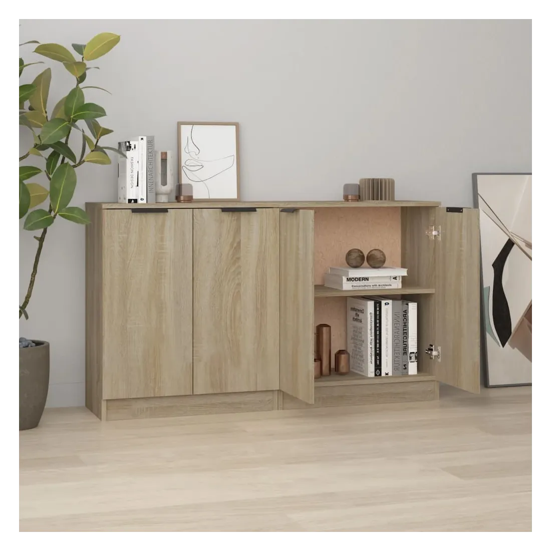 Dotés d'un charme minimaliste, ces buffets sont destinés à satisfaire vos différentes exigences et à compléter idéalement votre pièce. Matériau facile à nettoyer : fabriquées en bois d'ingénierie, les armoires latérales sont faciles à nettoyer. Le bois d'ingénierie est d'une qualité exceptionnelle avec une surface lisse et présente également résistance, stabilité et résistance à l'humidité.Grand espace de rangement : l'espace de rangement rend ces buffets faciles à organiser.Armoire multifonctionnelle : le dessus robuste est idéal pour afficher des objets décoratifs, des cadres photo ou des plantes en pot. Elles peuvent également être utilisées comme armoires de console, armoires latérales, etc. ATTENTION :Afin d'éviter le basculement, ces produits doivent être utilisés avec le dispositif de fixation murale fourni.