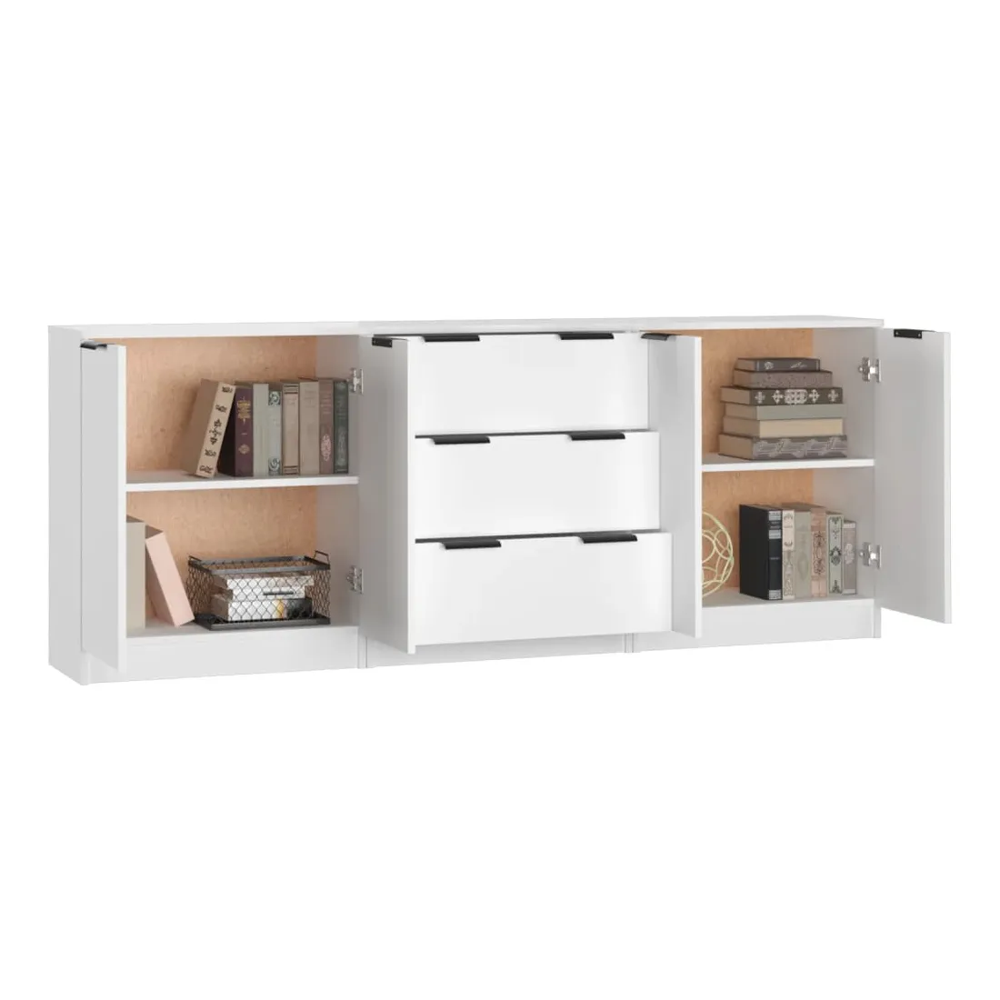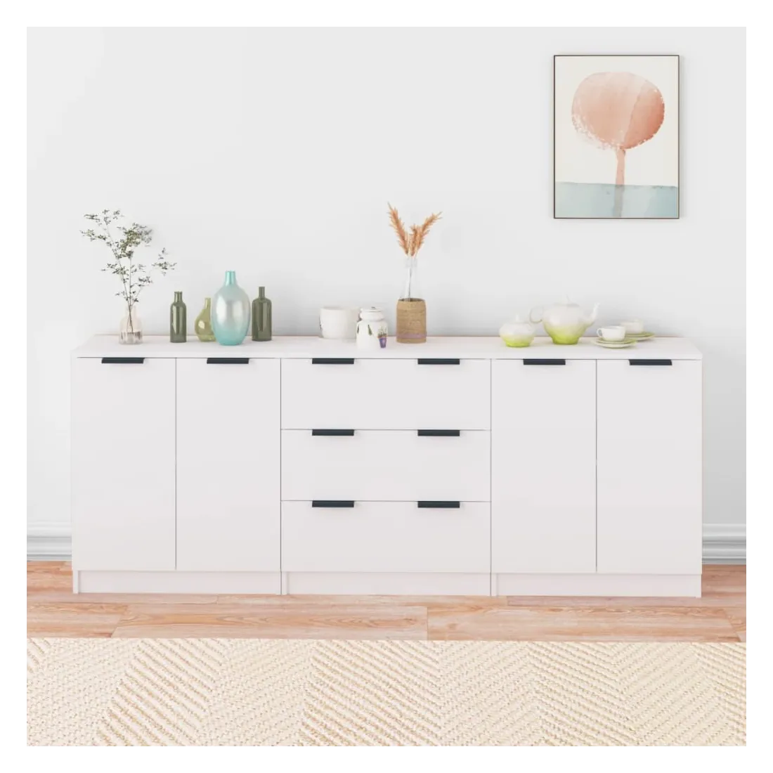 Dotés d'un charme minimaliste, ces buffets sont destinés à satisfaire vos différentes exigences et à compléter idéalement votre pièce. Matériau facile à nettoyer : fabriquées en bois d'ingénierie, les armoires latérales sont faciles à nettoyer. Le bois d'ingénierie est d'une qualité exceptionnelle avec une surface lisse et présente également résistance, stabilité et résistance à l'humidité.Grand espace de rangement : l'espace de rangement rend ces buffets faciles à organiser.Armoire multifonctionnelle : le dessus robuste est idéal pour afficher des objets décoratifs, des cadres photo ou des plantes en pot. Elles peuvent également être utilisées comme armoires de console, armoires latérales, etc. ATTENTION :Afin d'éviter le basculement, ces produits doivent être utilisés avec le dispositif de fixation murale fourni.